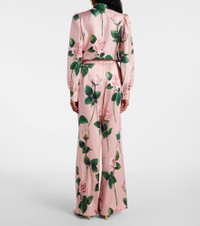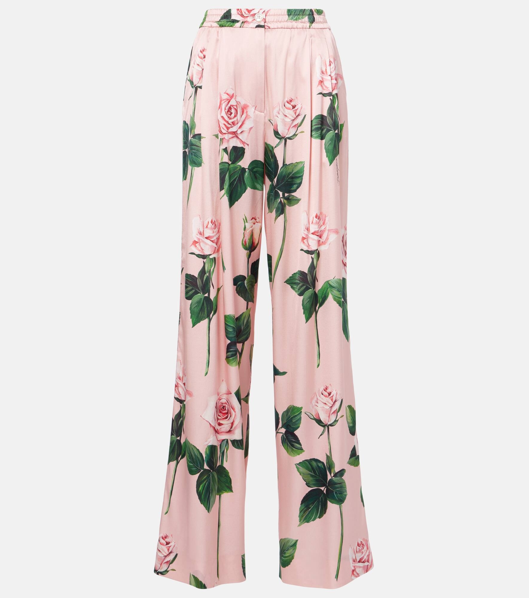 Product Details - Material: 93% silk, 7% elastane - Care instructions: dry clean - Made in Italy - Designer color name: Rose C/Stelo F.Rosa - Closure: zip and button fastening - Pockets: side slit pockets - Elasticated waistband - Item number: P01009503 Size & Fit - True to size - Elasticated waist - Non-stretchy fabric - Wide-leg - The model seen in the picture is 178cm-5'10" and wearing a size IT 40