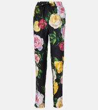 Silk pajama pants with elasticated waist and peony and rose print