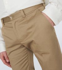 Product Details - Material: 97% cotton, 3% elastane - Care instructions: dry clean - Made in Italy - Designer color name: Khaki - Closure: zipper fly, button fastening - Pockets: side slit pockets, back pockets - Adjustable tabs at the waist - Belt loops - Chinos - Item number: P00875592 Size & Fit - True to size - Non-stretchy fabric - Straight leg - Unhemmed for tailoring - The model in the picture is 185cm-6'1" and wearing a size IT 48