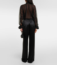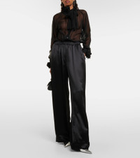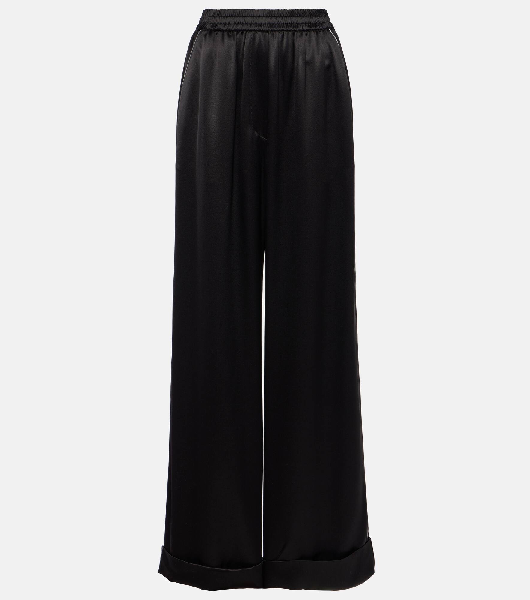 Product Details - Material: 95% silk, 4% polyester, 1% elastane - Care instructions: dry clean - Made in Italy - Designer color name: Nero - Pockets: side slit pockets - Item number: P00872777 Size & Fit - True to size - Elasticated waist - Non-stretchy fabric - Wide-leg - The model seen in the picture is 178cm-5'10" and wearing a size IT 40