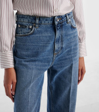 These Dolce&Gabbana straight jeans are designed with a high-rise silhouette and subtle creases for a refined finish. The style is complete with a plaque at the back and seams that create a folded effect at the bottom. Product Details - Material: 100% cotton - Care instructions: machine wash at 30 degrees - Made in Italy - Designer color name: Variante Abbinata - Item color: blue - Closure: zipper fly, button fastening - Pockets: five pockets - Belt loops - Item number: P01052489 Size & Fit - True to size - Non-stretchy fabric - Straight leg - High-rise - The model seen in the picture is 178cm-5'10" and wearing a size IT 40