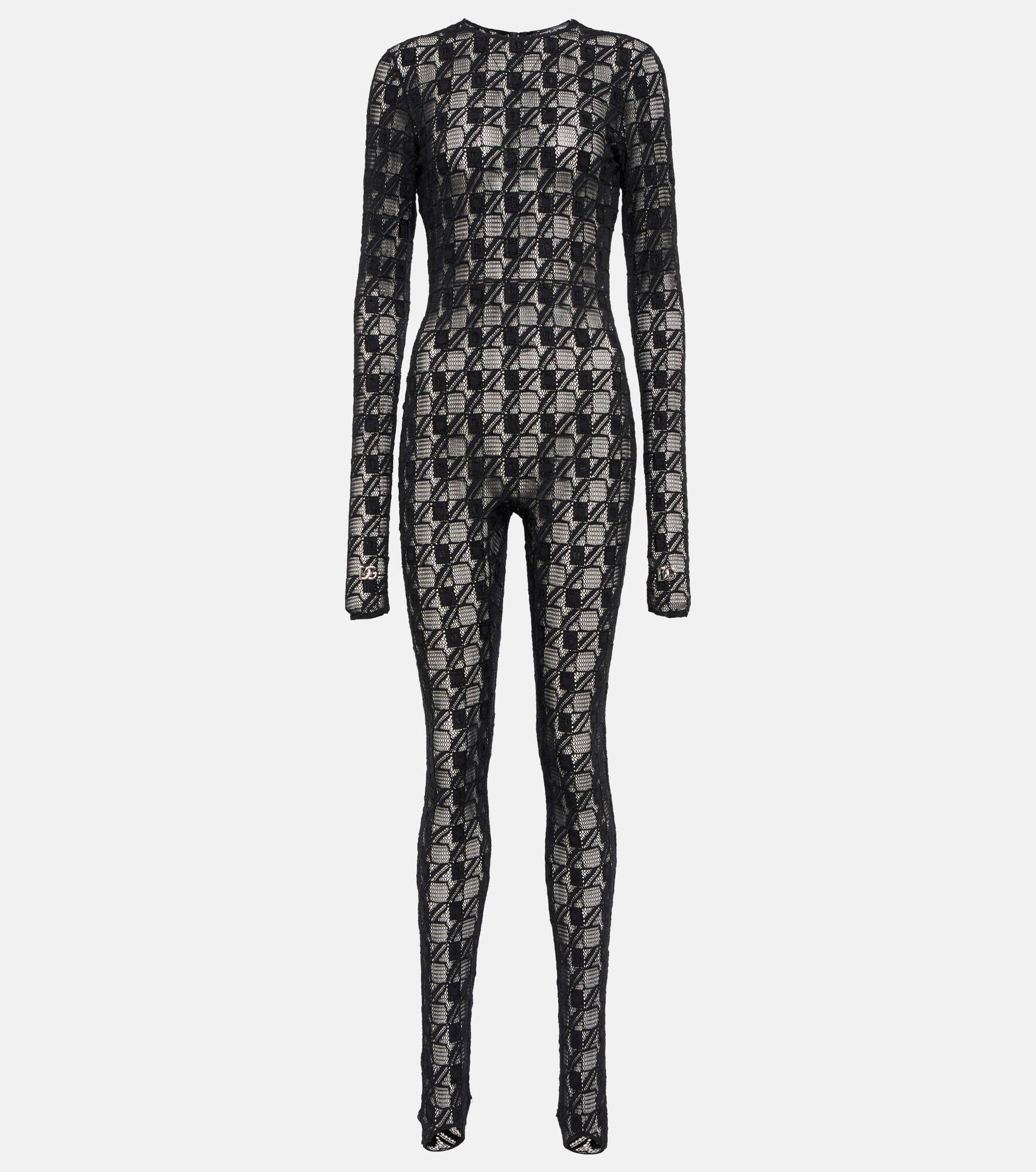 Dolce&Gabbana redefines the classic jumpsuit for this streamlined piece. Part of the FW22 collection which explores a modern approach to traditional fabrics, this second-skin style has a geometric pattern and is made in Italy. Product Details - Made in Italy - Care instructions: machine wash at 30 degrees - Closure: zipped back - Material: 89% polyamide, 8% elastane, 3% viscose - Item number: P00731416 Size & Fit - True to size - Extra-long sleeves - Sheer - Fitted - The model seen in the picture is 178cm-5'10" and wearing a size IT 40