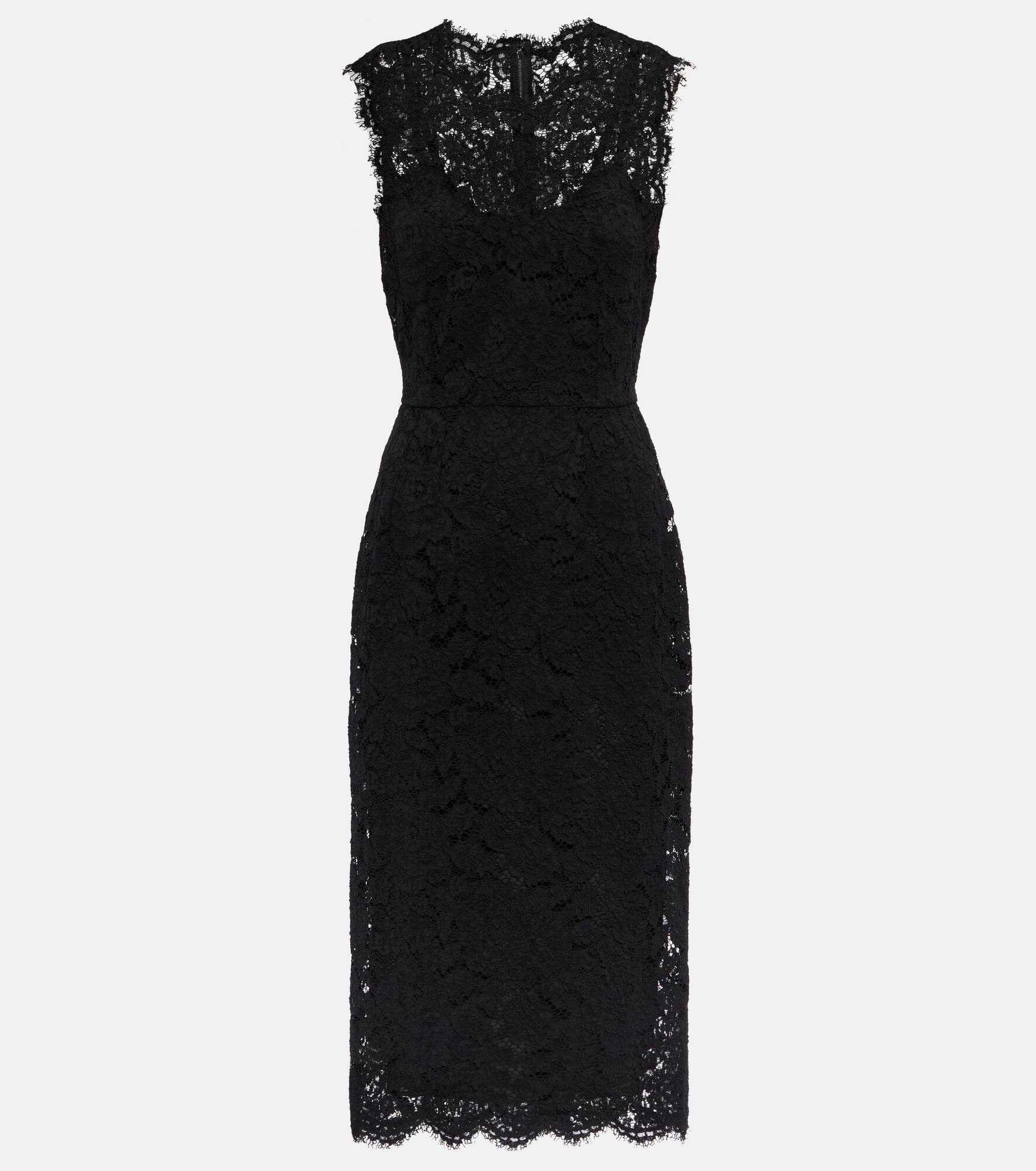 Add this elegant midi number from Dolce&Gabbana to your versatile rotation of little black dresses. Sophisticated and sleeveless, the piece calls back to old-school glamor with its lacy design. Product Details - Made in Italy - Care instructions: dry clean - Material: 24% cotton, 5% elastane, 20% polyamide, 51% viscose - Lining: 9% elastane, partially lined, 91% silk - Designer color name: Nero - Closure: concealed zipper - Item number: P00772751 Size & Fit - Fits large to size - we recommend trying one size smaller - Fitted - Please note: Slip dress is fitted - Mid-weight material - The model seen in the picture is 178cm-5'10" and wearing a size IT 38