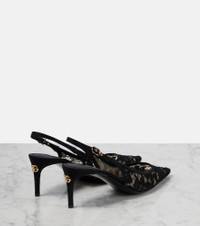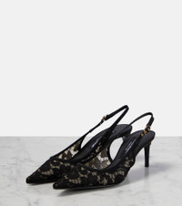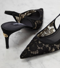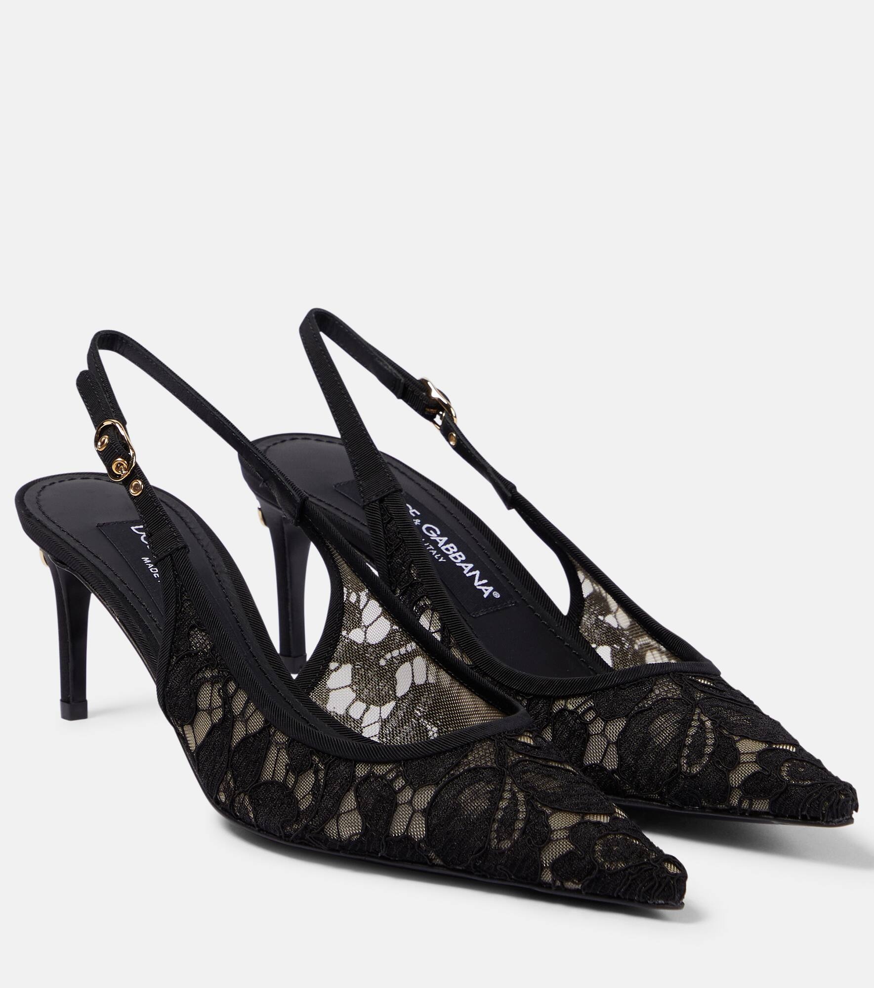 Sicilian culture is at the heart of Dolce&Gabbana's aesthetic, which attributes most of its bold styles to its Italian heritage. These pumps are an elegant slingback style made in Italy from intricate lace atop leather soles. Product Details - Upper: fabric - Sole: leather insole and sole - Toe shape: pointed toe - Closure: buckle-fastening ankle strap - Designer color name: Nero - Made in Italy - Item number: P00815529 Size & Fit - True to size - Narrow at the toe - European sizes - 7,5cm-3" heel (size EU 38)