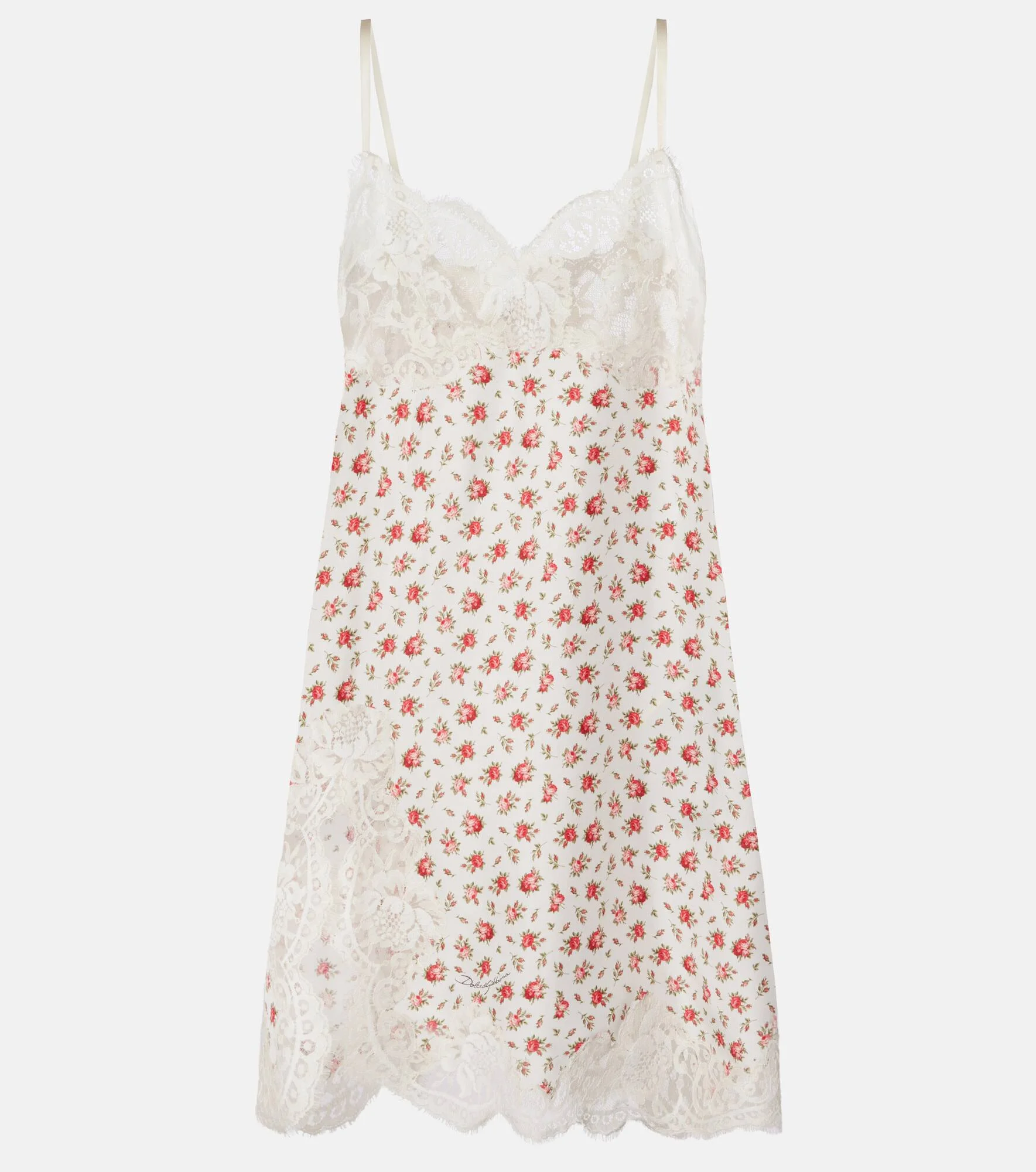 Sicilian culture is on display in Dolce&Gabbana's aesthetic, with bold styles inspired by the brand's Italian heritage. Made from a silk and cotton blend, this slip dress is detailed with a floral print and delicate lace trims. Product Details - Material: 70% silk, 18% cotton, 12% polyamide - Care instructions: dry clean - Made in Italy - Color: white - Designer color name: Roselline F.Bco - Closure: concealed zipped back - Item number: P01122892 Size & Fit - True to size - Low back - Sheer - Non-stretchy fabric - The model seen in the picture is 178cm-5'10" and wearing a size IT 40
