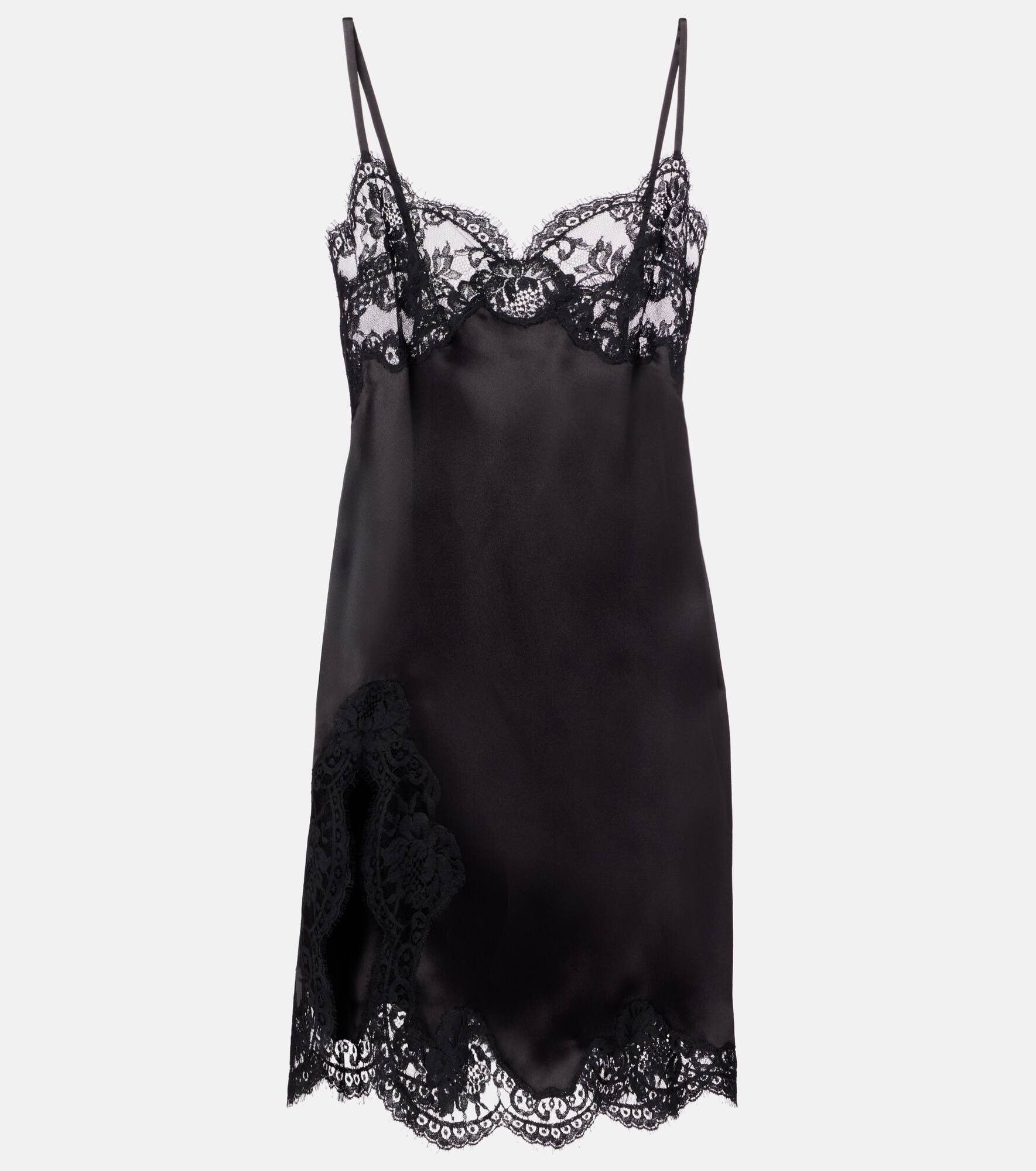 Sicilian culture is on display in Dolce&Gabbana's aesthetic, with bold styles inspired by the brand's Italian heritage. This slip dress is made from lustrous silk-blend satin and is enriched with lace trims for an exquisite finish. Product Details - Material: 70% silk, 20% cotton, 10% polyamide - Care instructions: dry clean - Made in Italy - Designer color name: Nero - Item color: black - Closure: invisible zipper - Item number: P01083677 Size & Fit - True to size - Low back - Designed for a loose fit - Non-stretchy fabric - The model seen in the picture is 178cm-5'10" and wearing a size IT 40