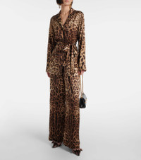 Leopard-print satin slingbacks