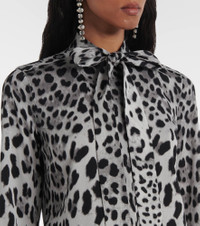 Leopard-print charmeuse shirt with pussy-bow
