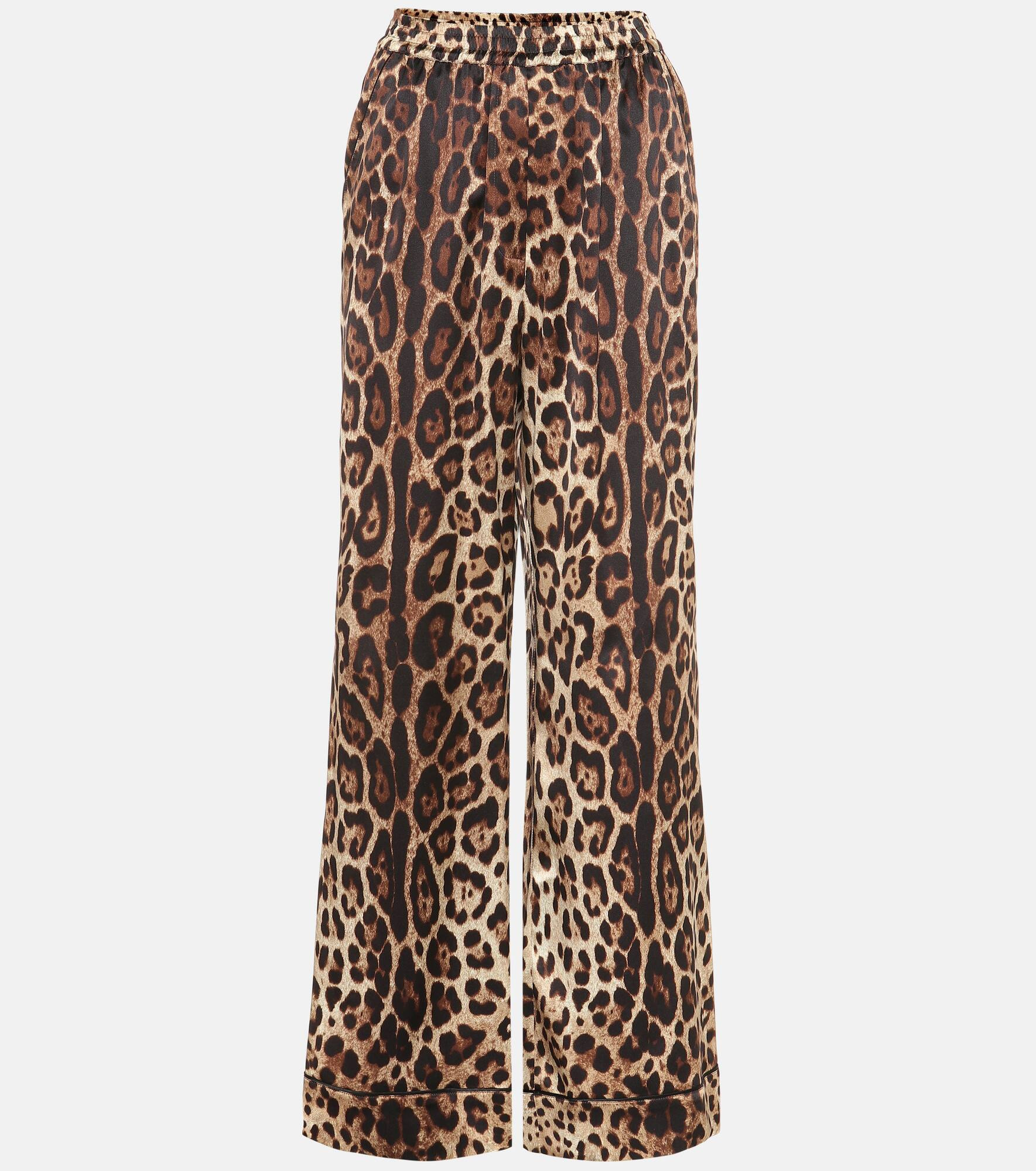 Leopard-print satin pajama pants
