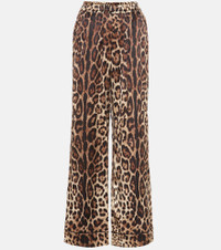 Leopard-print stretch-silk pants