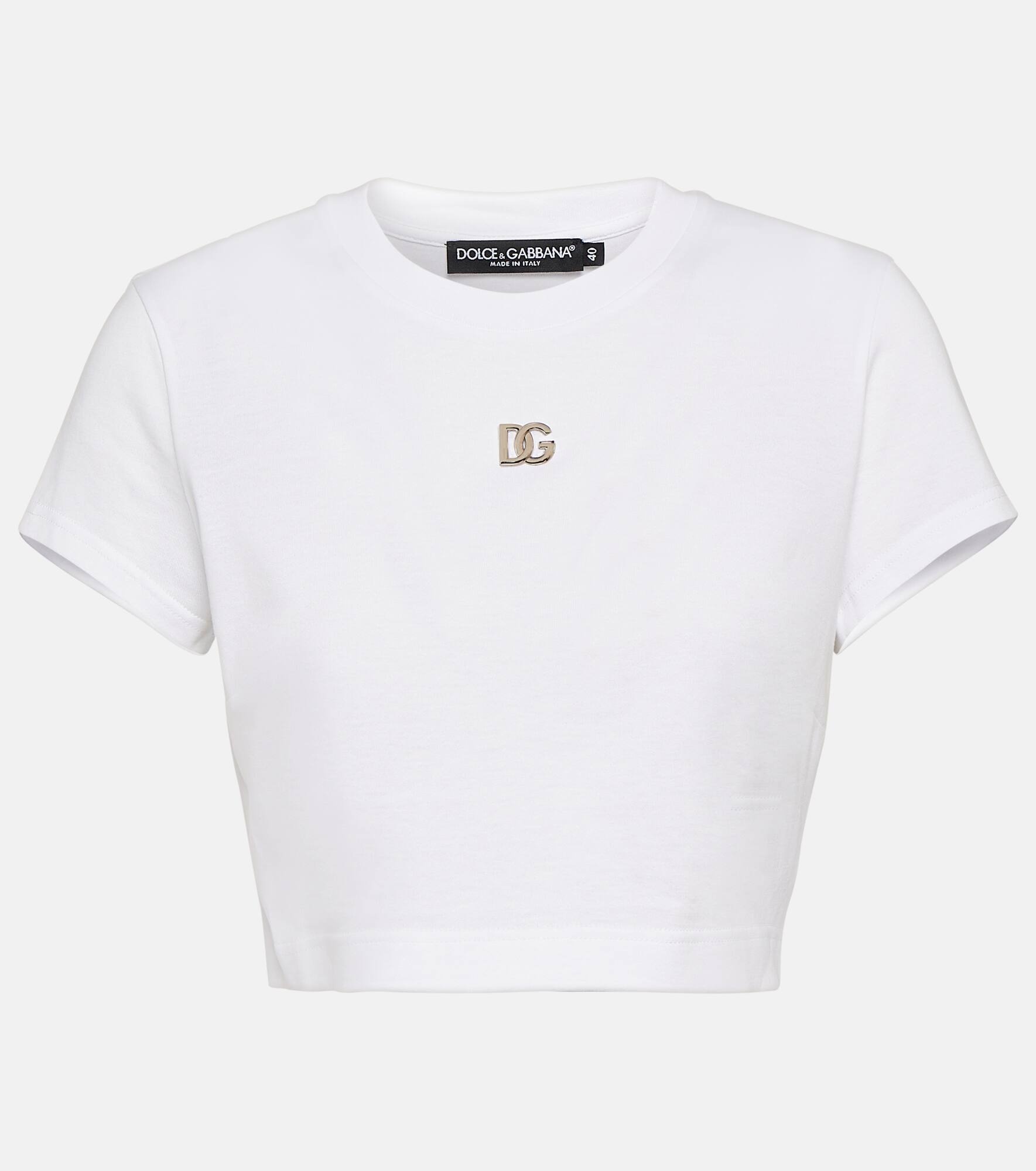 The ultimate wardrobe staple, this crop top from Dolce&Gabbana is topped with silver-toned logo hardware. It’s made from soft, stretchy cotton jersey for a slim fit. Product Details - Made in Italy - Material: 100% cotton - Care instructions: machine wash at 30 degrees - Designer color name: Bianco Ottico - Item number: P00830803 Size & Fit - True to size - Straight fit - Mid-weight material - Cropped - The model seen in the picture is 178cm-5'10" and wearing a size IT 40