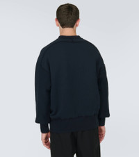 Product Details - Material: 100% cotton - Care instructions: machine wash at 30 degrees - Made in Italy - Designer color name: Blu Scurissimo 1 - Collar: V-neck - Cuff: ribbed - Hem: ribbed - Material II: 95% cotton, 3% polyamide, 2% elastane - Item number: P00875681 Size & Fit - True to size - Designed for a loose fit - Slightly stretchy fabric - Falls to the hip - The model in the picture is 185cm-6'1" and wearing a size M