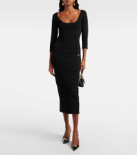 Calf-length viscose knit dress