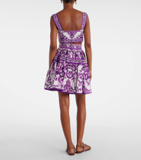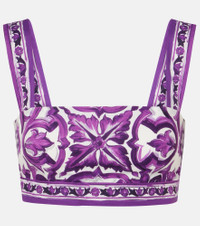 Sicilian culture is at the heart of Dolce&Gabbana's aesthetic, which attributes most of its bold styles to its Italian heritage. Made from cotton poplin, this bra top features the brand's signature Majolica print in purple. Product Details - Material: 100% cotton - Care instructions: dry clean - Made in Italy - Designer color name: Mix Maiolica Viola - Item color: white, purple - Lining: 100% cotton - Closure: zipped back - Item number: P01041106 Size & Fit - Fits large to size - we recommend trying one size smaller - Fitted - Non-stretchy fabric - Cropped - The model seen in the picture is 178cm-5'10", cup size %cupsize%, and wearing a size IT 38