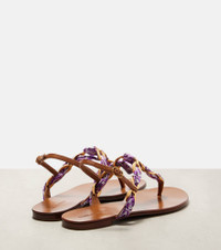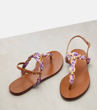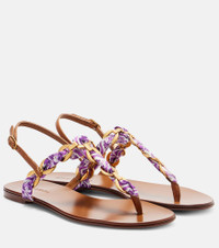 Majolica leather-trimmed satin thong sandals