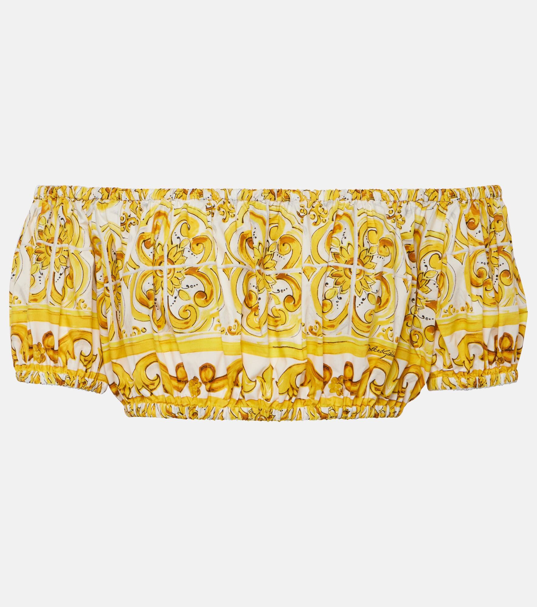 Product Details - Material: 100% cotton - Care instructions: dry clean - Made in Italy - Designer color name: Mix Maiolica Giallo - Item number: P00949985 Size & Fit - True to size - Off-the-shoulder - Designed for a loose fit - Elasticated hem - Mid-weight material - Cropped - The model seen in the picture is 178cm-5'10" and wearing a size IT 40