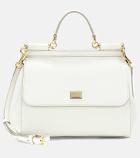 Dolce&Gabbana's covetable 'Miss Sicily' bag is ladylike in this clean ivory hue. The classic shape is finished with gold-tone accents for a timelessly glamorous look. For daytime, carry it next to pretty sun dresses or casual denim, swapping to a structured LBD come cocktail hour. Product Details - Material: calf leather - Internal details: fabric lining, internal zipped and slot pockets, hand-held mirror - Designer color name: White - Closure: magnetic fastening - Detachable, adjustable shoulder strap - Made in Italy - Item number: P00167092 Size & Fit - Height 23cm-9" - Max. width 28cm-11" - Depth 12cm-4.5" - Min. length shoulder strap 103cm-40.5" - Max. length shoulder strap 121cm-47.5"