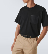 Cotton T-shirt with leather breast pocket and logo