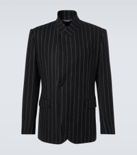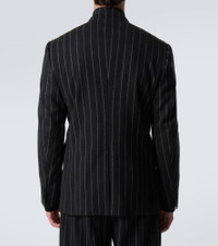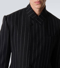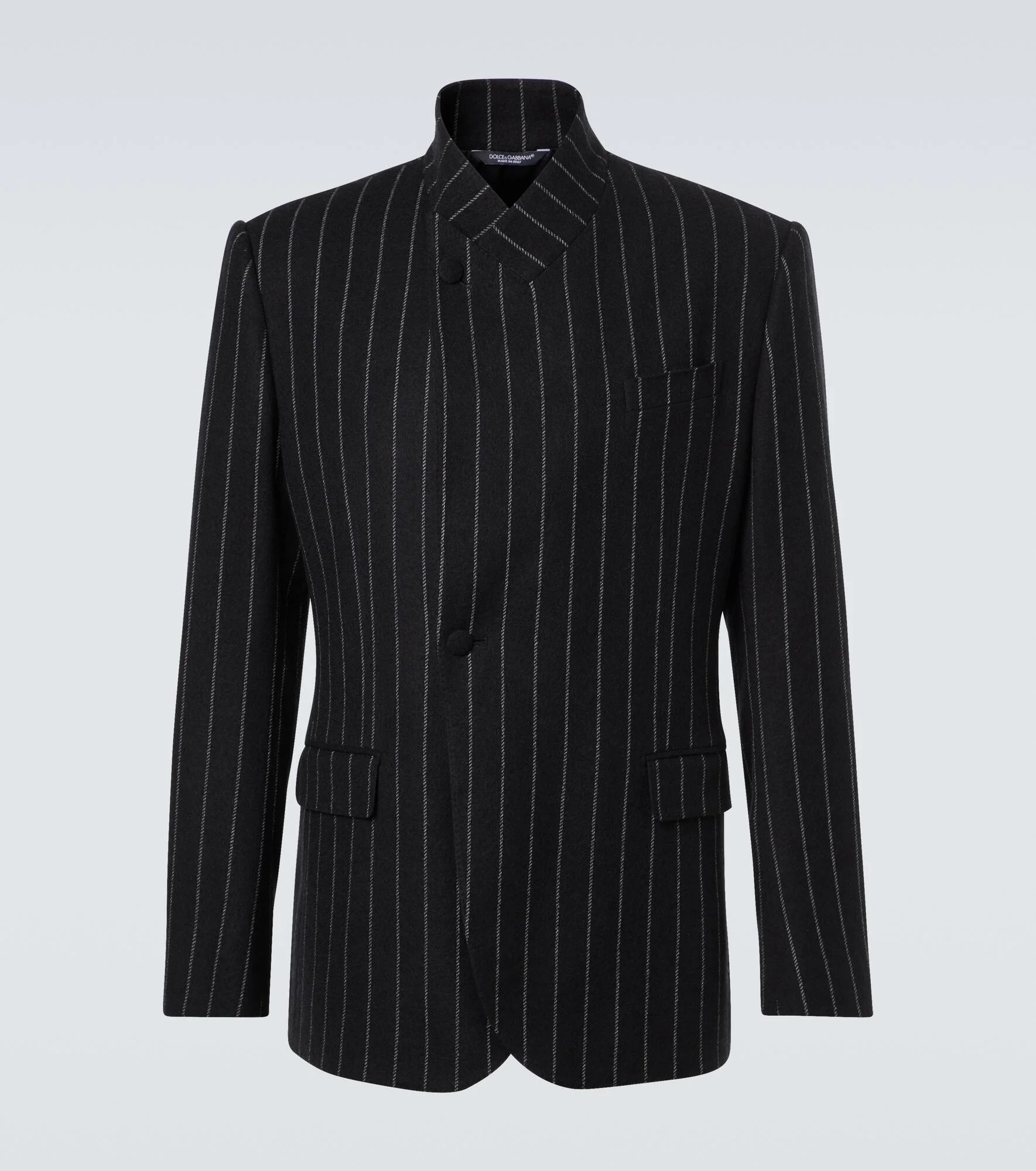 This single-breasted blazer from Dolce&Gabbana is crafted from a wool blend and features a charming pinstripe pattern. The sophisticated design is cut to the house's signature Sicily silhouette with low shoulders, rounded lapels, and front pockets. Product Details - Material: 91% wool, 5% polyamide, 2% elastane, 2% polyester - Care instructions: dry clean - Made in Italy - Designer color name: Striped - Item color: black - Lining: 100% silk - Filling: 44% wool, 44% viscose, 12% other fibres - Peak lapel - Cuff: four buttons - Pockets: breast pocket, flap pockets, internal pockets - Closure: single-breasted (one button) - Vent: single - Item number: P01049963 Size & Fit - True to size - Shoulder pad inserts - Regular fit - Non-stretchy fabric - Falls below the hip - The model in the picture is 185cm-6'1" and wearing a size IT 50
