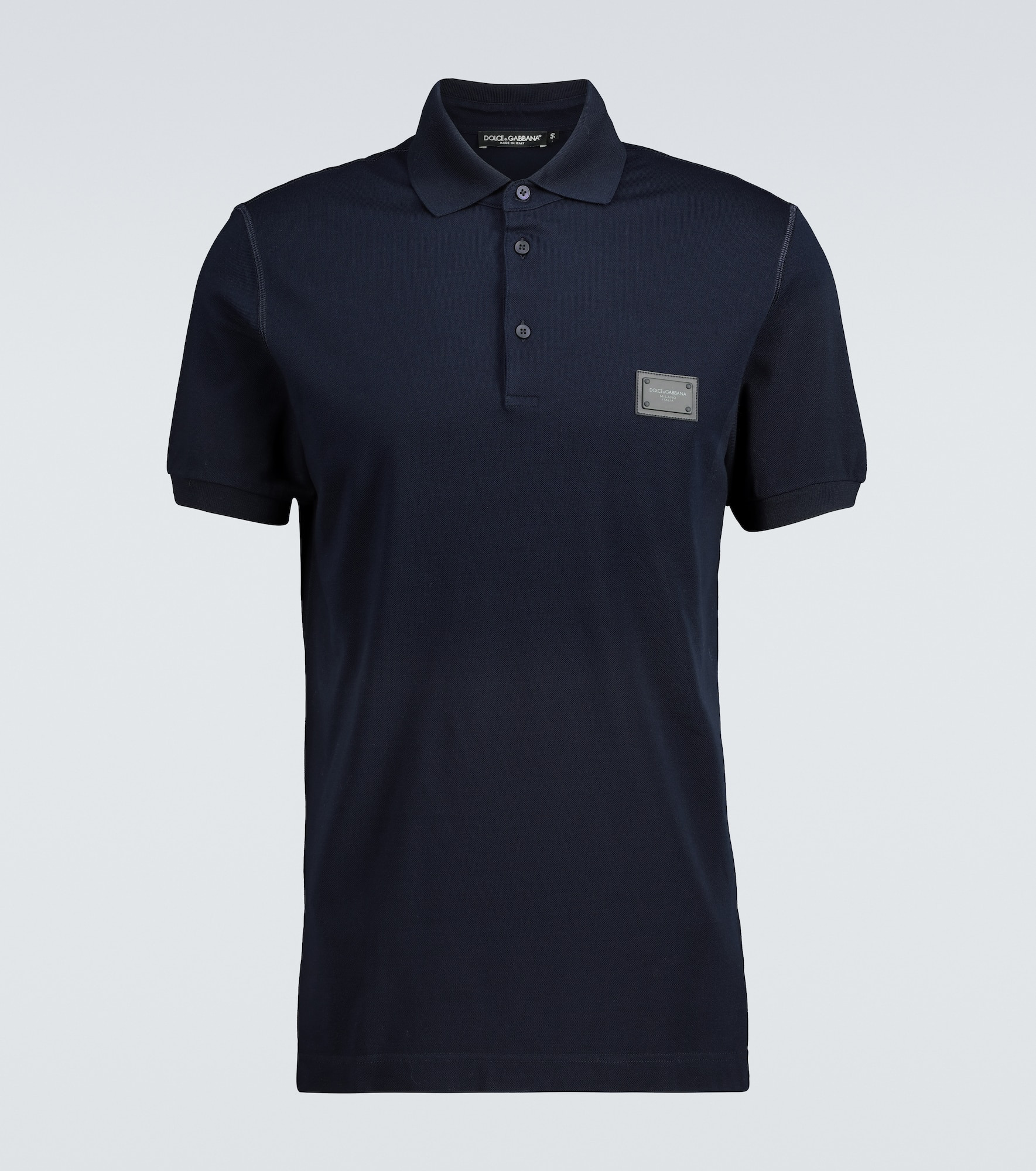 Crafted from 100% cotton, this regular fit black polo shirt from Dolce & Gabbana has a three-button placket and is finished with an embroidered leather logo. - material: 100% cotton - care instructions: machine wash at 30 degrees - partially buttoned front - Made in Italy - Designer colour name: Blu Scurissimo