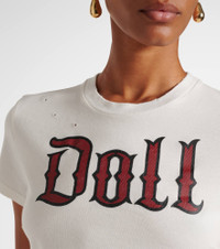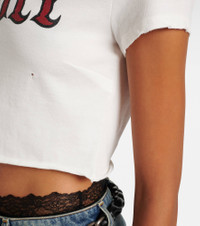 This playful T-shirt from Dolce&Gabbana is made from soft cotton jersey and cut to a cropped silhouette. The style features subtle distressed details and vibrant prints on the front and back. Product Details - Material: 100% cotton - Care instructions: machine wash at 30 degrees - Made in Italy - Designer color name: Variante Abbinata - Item color: white - Trim: 100% cotton - Collar: crewneck - Distressed details - Item number: P01083675 Size & Fit - Fits large to size - we recommend trying one size smaller - Cinched waist - Slightly stretchy fabric - Cropped - The model seen in the picture is 178cm-5'10" and wearing a size IT 38
