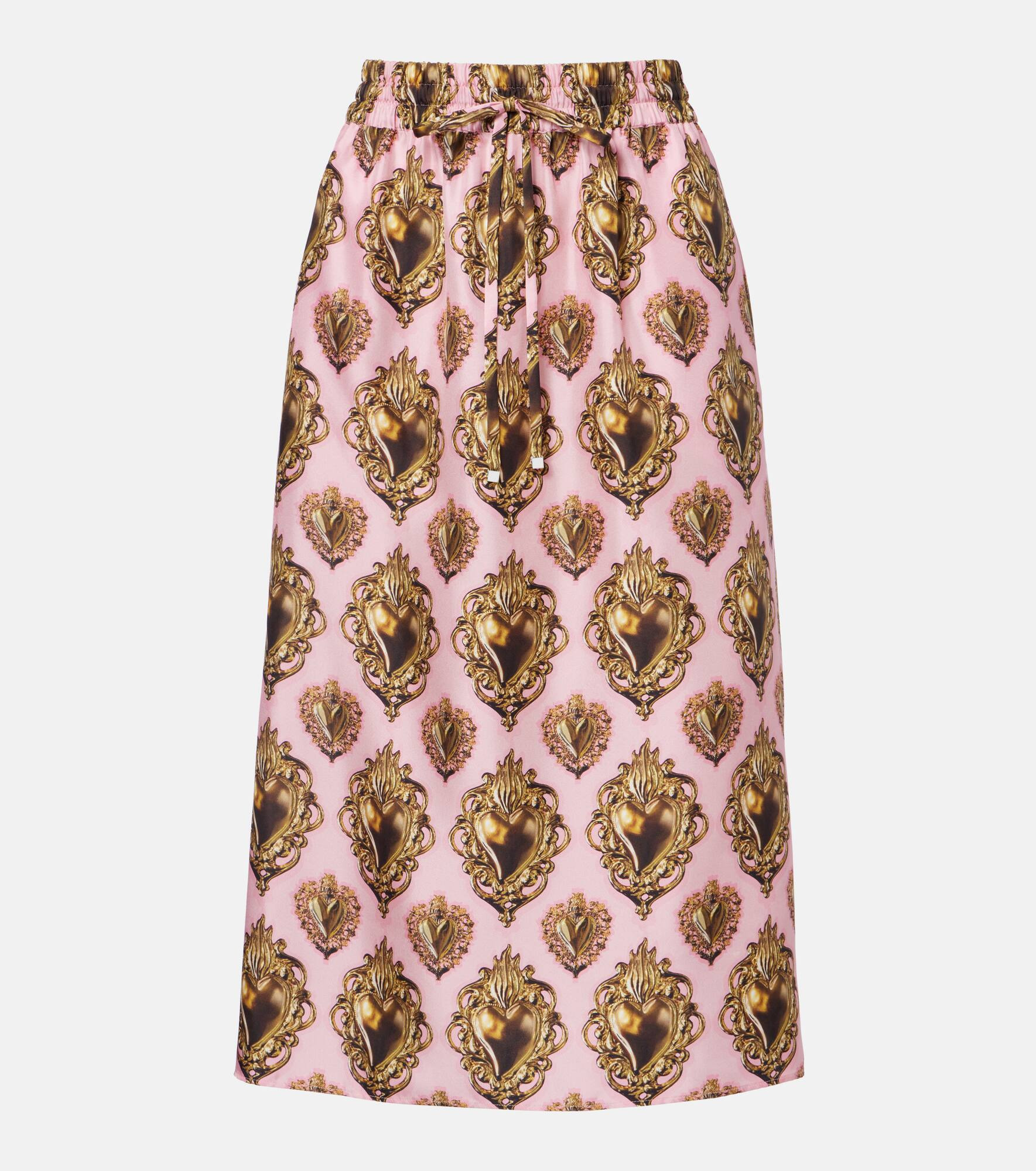 Sicilian culture is at the heart of Dolce&Gabbana's aesthetic, which attributes most of its bold styles to its Italian heritage. Made in Italy from silk, this midi skirt features an all-over print and an elasticated drawstring waistband. Product Details - Material: 100% silk - Care instructions: dry clean - Made in Italy - Designer color name: Sacro Cuore F.Confetti - Item color: pink, gold - Elasticated drawstring waist - Pockets: side slit pockets - Item number: P01106952 Size & Fit - True to size - Elasticated waist - Adjustable at the waist - Non-stretchy fabric - High-waisted - The model seen in the picture is 178cm-5'10" and wearing a size IT 40