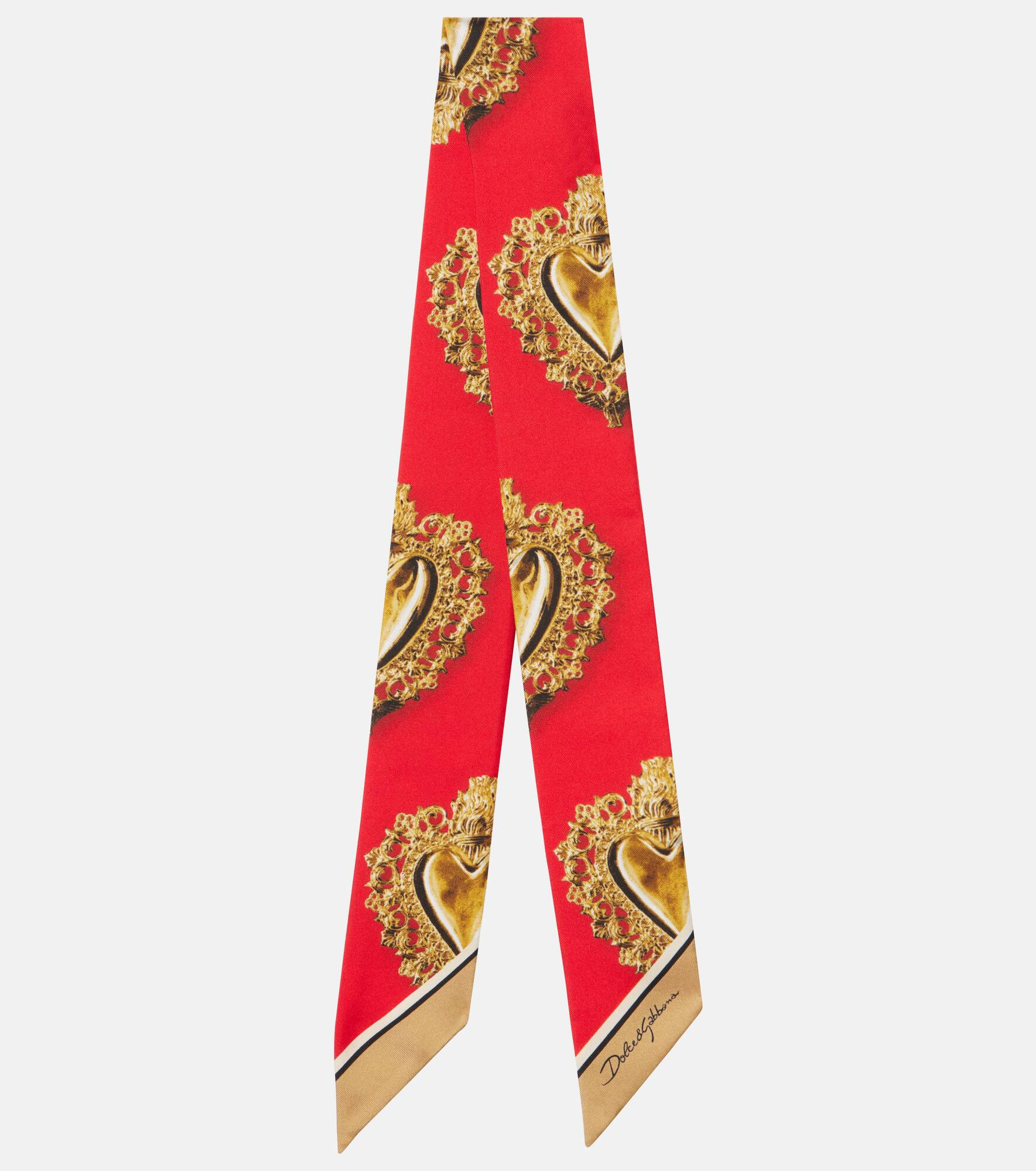 Sicilian culture is on display in Dolce&Gabbana's aesthetic, with bold styles inspired by the brand's Italian heritage. This scarf is presented in lustrous silk twill and decorated with printed signature symbols throughout. Product Details - Material: 100% silk - Care instructions: dry clean - Made in Italy - Designer color name: Sacro Cuore F.Rosso - Item color: gold, red - Item number: P01110655 Size & Fit - Length 100cm-39.5" - Width 6cm-2.5"