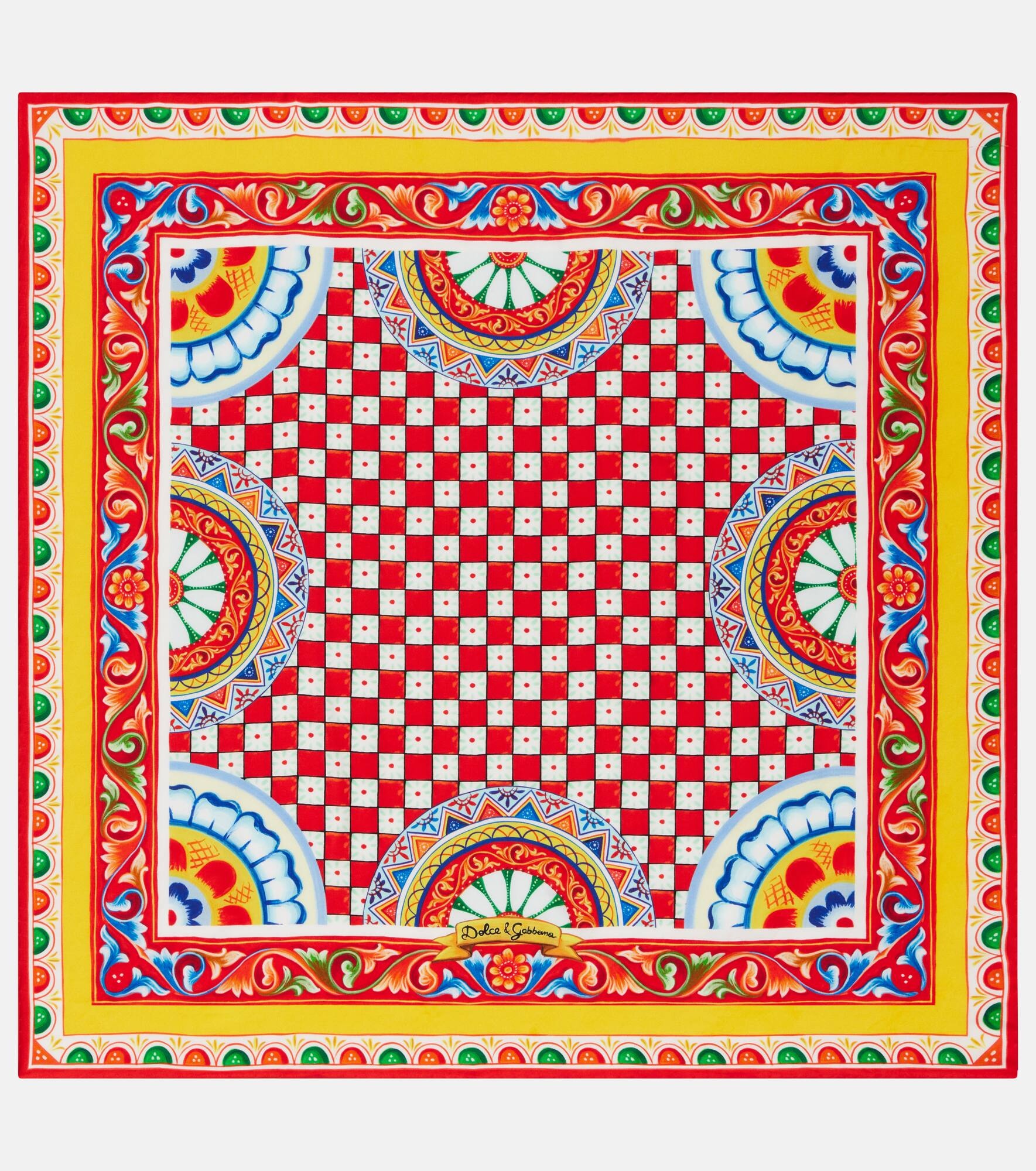 This printed silk twill scarf is classic Dolce&Gabbana with its bold, colorful, and Italianate pattern. An eye-catching accessory, this design will enhance even the simplest outfit. Product Details - Material: 100% silk - Care instructions: dry clean - Made in Italy - Designer color name: Myt Carretto F.Rosso - Item color: multicolor - Comes with a box - Contains non-textile parts of animal origin - Item number: P01057194 Size & Fit - Length 70cm-27.5" - Width 70cm-27.5"