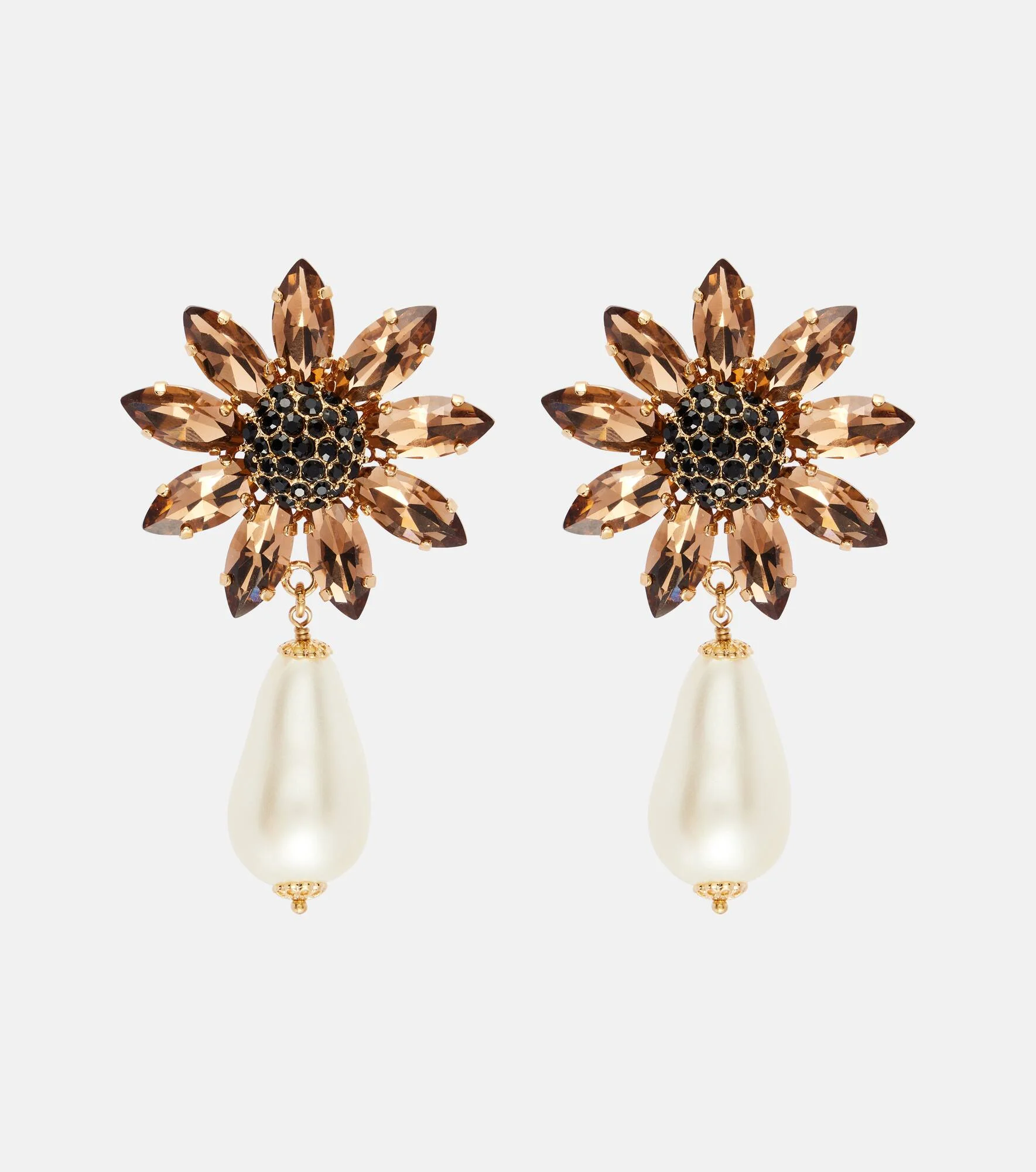 Sicilian culture is on display in Dolce&Gabbana's aesthetic, with bold styles inspired by the brand's Italian heritage. The Re-Edition drop earrings are a gold-toned pair with faux pearls and shimmering crystal embellishments thoughtfully placed in a floral-inspired shape. Product Details - Material: brass, glass, Plexiglas® - Made in Italy - Closure: clip-on - Color: gold - Includes: box - Item number: P01129334 Size & Fit - Length 7,5cm-3" - Max. width 4cm-1.5"