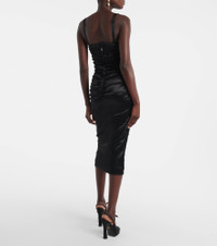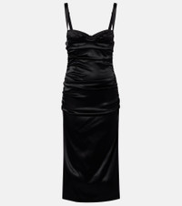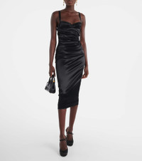 Sicilian culture is on display in Dolce&Gabbana's aesthetic, with bold styles inspired by the brand's Italian heritage. This bustier dress is made from satin with a fitted silhouette, featuring a ruched design and adjustable shoulder straps. Product Details - Material: 50% acetate, 20% silk, 20% polyamide, 5% elastane, 5% polyester - Care instructions: dry clean - Made in Italy - Designer color name: Nero - Item color: black - Lining: 92% silk, 8% elastane - Filling: 76% polyester, 24% polyurethane - Closure: zipped side - Padded cups - Underwired cups - Boning - Adjustable shoulder straps - Fully lined - Item number: P01052506 Size & Fit - True to size - Fitted - Slightly stretchy fabric - Please note: small cups - Padded, underwired top - The model seen in the picture is 178cm-5'10" and wearing a size IT 40