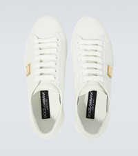 Elevate your everyday edit with Dolce&Gabbana's effortlessly elegant Saint Tropez sneakers. Set atop rubber soles, the understated style is crafted from white leather and is finished with flat laces and a gold-tone logo tag. Product Details - Sole: leather insole, rubber sole - Toe shape: round toe - Upper: leather - Closure: lace-up - Designer color name: Optical White - Comes with a box - Made in Italy - Comes with dust bag - Item number: P00816346 Size & Fit - True to size - Half sizes please take the next size up - European sizes