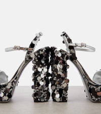 Sicilian culture is at the heart of Dolce&Gabbana's aesthetic, which attributes most of its bold styles to its Italian heritage. These sandals feature sequined faux-leather uppers set on platform soles. Product Details - Upper: fabric - Lining: leather - Sole: leather insole and sole - Toe shape: almond open toe - Made in Italy - Includes: shoe box, dust bags - Designer color name: Argento - Closure: buckle-fastening ankle strap - Item number: P00991488 Size & Fit - True to size - European sizes - 15,5cm-6" heel (size EU 38) - 5cm-2" platform (size EU 38)