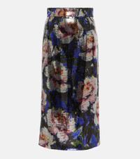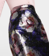 Sequined midi skirt with peony print