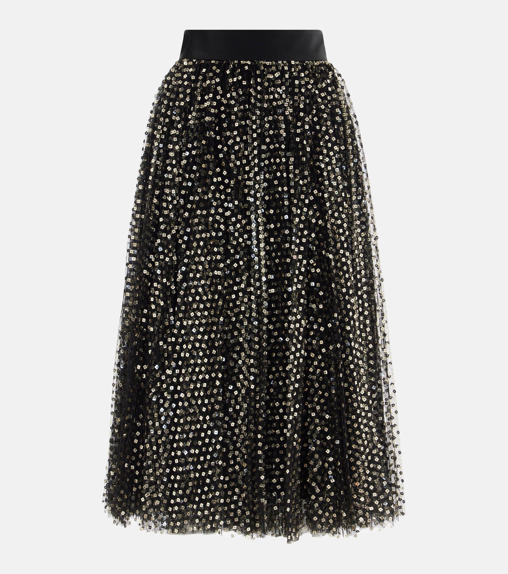 Tulle midi circle skirt with micro-sequin embroidery