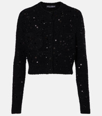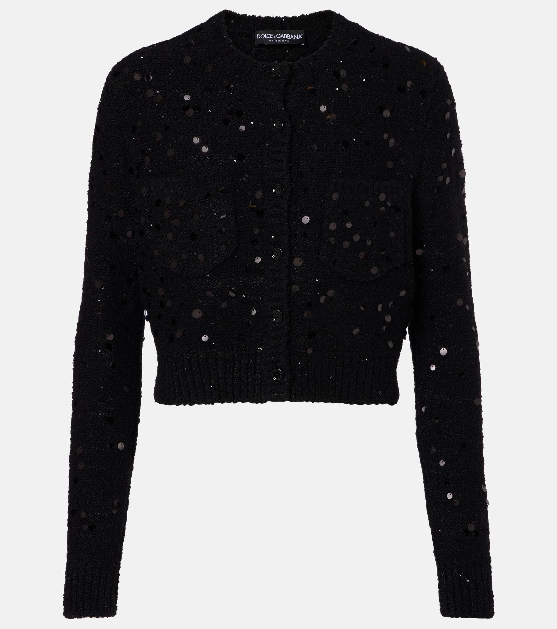 If you want to add a sparkling touch to your everyday wardrobe, this Dolce&Gabbana cardigan perfectly suits your needs. The garment is crafted from a wool blend and features a sequined silhouette. Product Details - Material: 64% wool, 32% polyester, 2% polyamide, 2% cashmere - Care instructions: specialist clean - Made in Italy - Designer color name: Nero - Item color: black - Closure: buttoned front - Pockets: patch pockets - Hem: ribbed - Cuff: ribbed - Item number: P01052503 Size & Fit - True to size - Straight fit - Slightly stretchy fabric - Cropped - The model seen in the picture is 178cm-5'10" and wearing a size IT 40