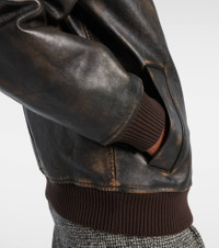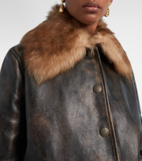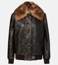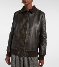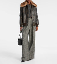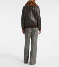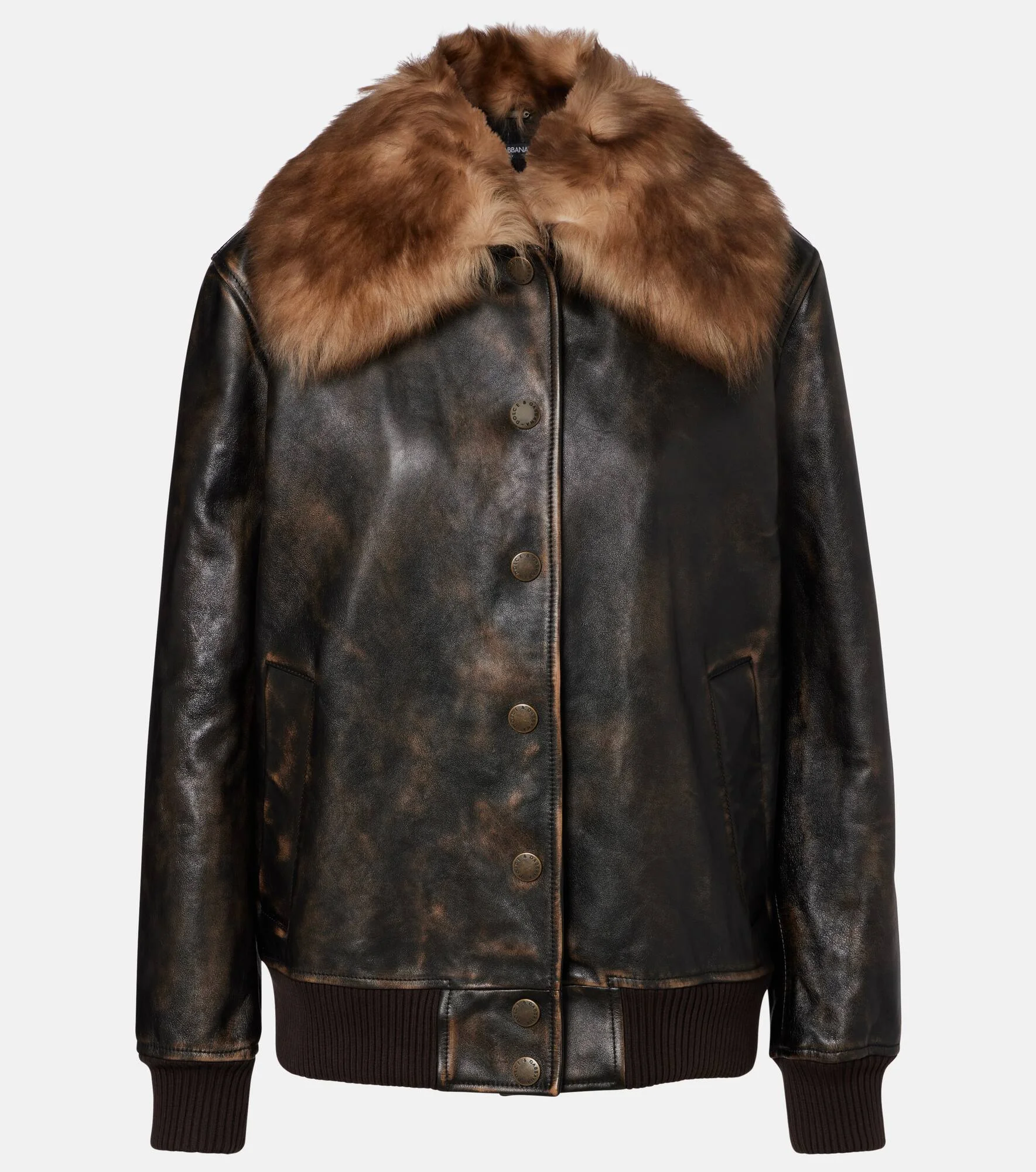 This bomber jacket embodies Dolce&Gabbana's vision for striking looks. The piece is expertly crafted in Italy from smooth leather and stands out with its soft shearling collar and buttoned front. Product Details - Material: 100% calf leather - Care instructions: specialist clean - Made in Italy - Designer color name: Brown-Grey 5 - Item color: brown - Lining: 97% polyester, 3% elastane - Filling: 100% polyester - Pockets: slant pockets - Closure: buttoned front - Item number: P01052521 Size & Fit - True to size - Designed for a loose fit - Elasticated hem - Non-stretchy fabric - Falls below the hip - The model seen in the picture is 178cm-5'10" and wearing a size IT 40