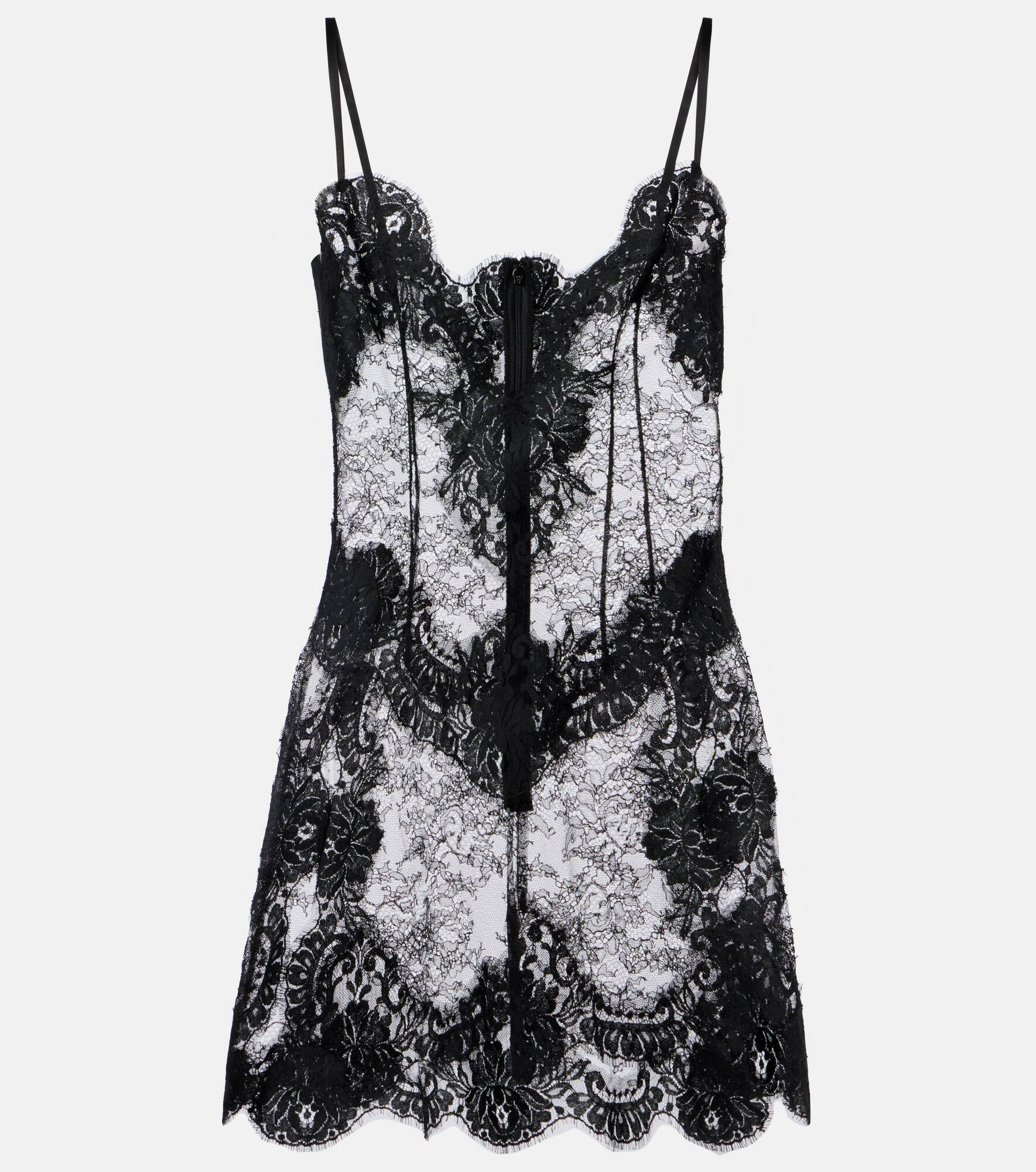 Sicilian culture is on display in Dolce&Gabbana's aesthetic, with bold styles inspired by the brand's Italian heritage. This minidress is crafted from delicate lace with a sheer finish and features thin shoulder straps and a floral motif. Product Details - Material: 49% polyamide, 23% viscose, 18% cotton, 9% silk, 1% elastane - Care instructions: dry clean - Made in Italy - Designer color name: Nero - Item color: black - Closure: concealed zipped back - Item number: P01083672 Size & Fit - True to size - Sheer - Cinched waist - Non-stretchy fabric - The model seen in the picture is 178cm-5'10" and wearing a size IT 40