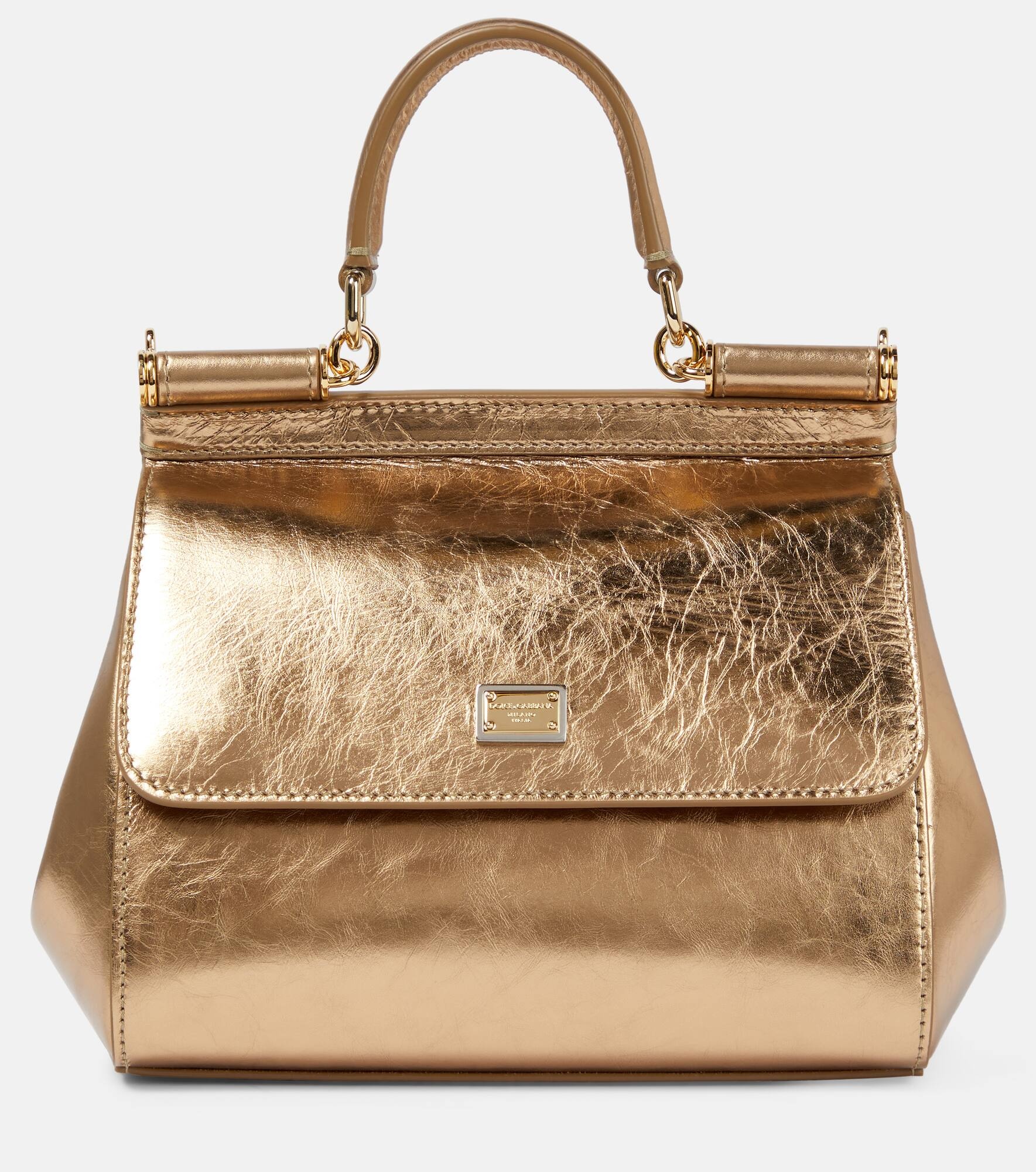 A brand signature, Dolce&Gabbana's Sicily tote bag is realized in metallic leather for a standout effect. This Small style has a structured silhouette with an adjustable, detachable crossbody strap if you want to go hands-free. Product Details - Material: calf leather - Comes with dust bag - Lining: leather - Made in Italy - Closure: magnetic fastening - Top handle, Detachable, adjustable shoulder strap - Internal details: fabric lining, card slot, internal slot pocket - Item number: P00809412 Size & Fit - Height 16cm-6.5" - Width 20cm-8" - Max. depth 10cm-4" - Min. length shoulder strap 100cm-39.5" - Max. length shoulder strap 118cm-46.5" - Suitable for large smartphones (e.g. iPhone 12 Pro Max / Samsung Galaxy A72, S21 Ultra/ Huawei P40 Pro, Mate 40 pro)