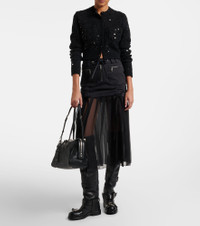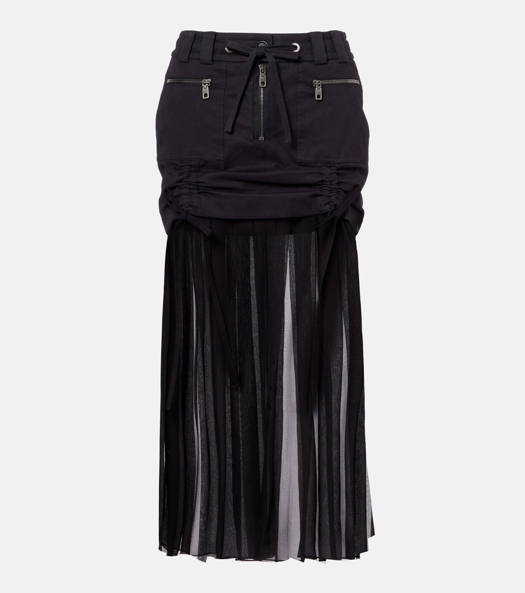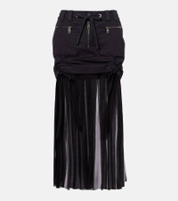 Sicilian culture is at the heart of Dolce&Gabbana's aesthetic, which attributes most of its bold styles to its Italian heritage. Made from silk and cotton, this midi skirt is a cargo-inspired style with a sheer hemline. Product Details - Material: 70% silk, 28% cotton, 2% elastane - Care instructions: dry clean - Made in Italy - Designer color name: Nero - Item color: black - Lining: 100% silk - Closure: zipper fly, button fastening - Pockets: zipped pockets, back pockets - Drawstring waist - Belt loops - Item number: P01083660 Size & Fit - True to size - Adjustable at the waist - Non-stretchy fabric - Sits low on the hips - The model seen in the picture is 178cm-5'10" and wearing a size IT 40
