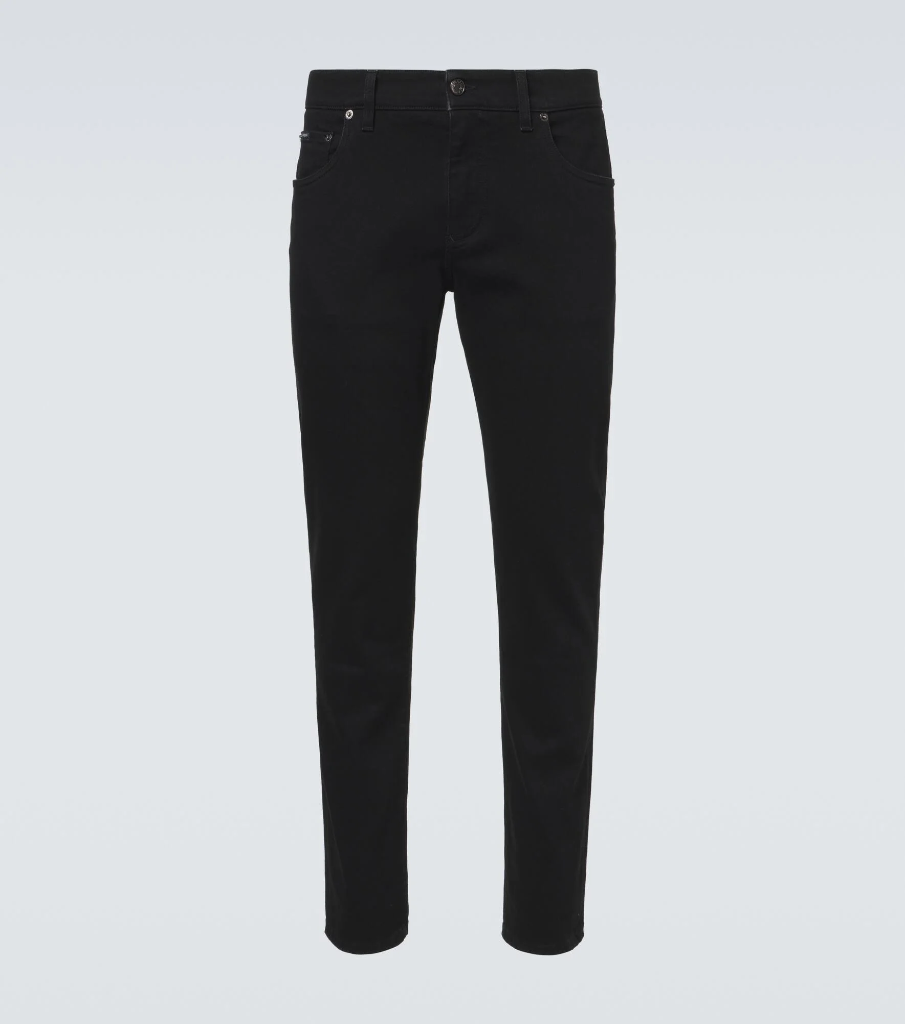 Sicilian culture is on display in Dolce&Gabbana's aesthetic, with bold styles inspired by the brand's Italian heritage. These jeans are cut from black denim to a slim-leg silhouette. Product Details - Material: 99% cotton, 1% elastane - Care instructions: machine wash at 30 degrees - Made in Italy - Color: black - Designer color name: Variante Abbinata - Closure: zipper fly, button fastening - Pockets: five pockets - Belt loops - Item number: P01129721 Size & Fit - Fits large to size - we recommend trying one size smaller - Slightly stretchy fabric - Slim-leg - Mid-rise - The model in the picture is 185cm-6'1" and wearing a size 48