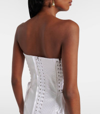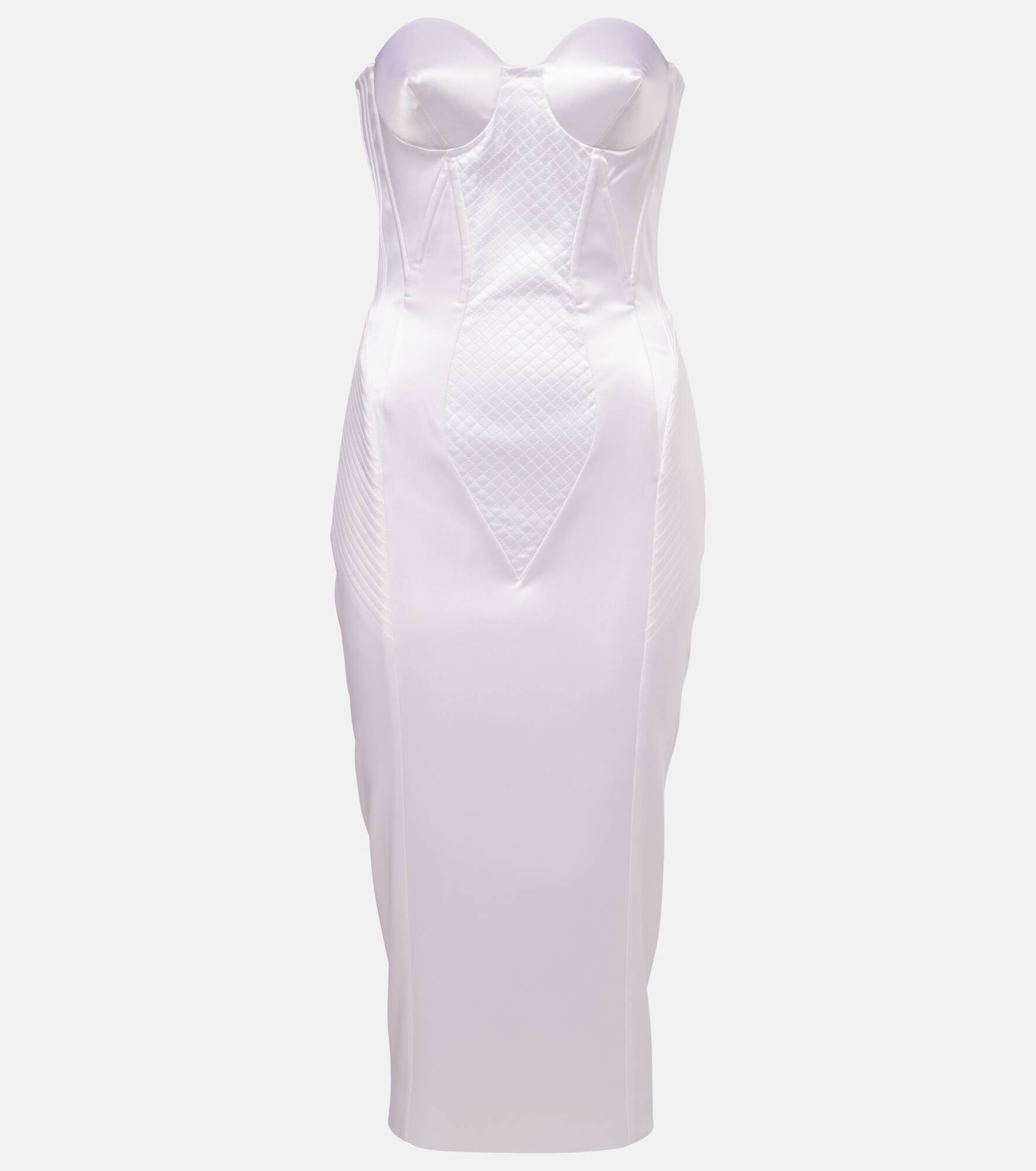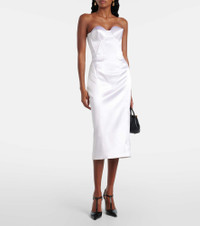 Taking inspiration from 50s-inspired lingerie, this strapless satin corset dress from Dolce&Gabbana features a sweetheart neckline with conical cups. The silhouette is completed with a stretch silk satin lining and lace-up detailing down the back. Product Details - Material: 65% acetate, 29% polyamide, 6% elastane - Care instructions: dry clean - Made in Italy - Designer color name: BIanco Ottico - Item color: white - Closure: zipped back - Lining: 92% silk, 8% elastane - Item number: P01024549 Size & Fit - True to size - Strapless - Internal boned corset for support - Cinched waist - Non-stretchy fabric - Padded, underwired top - The model seen in the picture is 178cm-5'10" and wearing a size IT 40