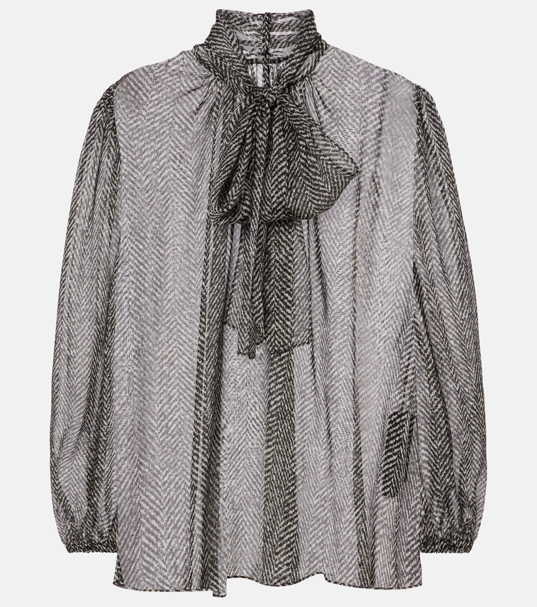 Tie-neck herringbone silk chiffon blouse