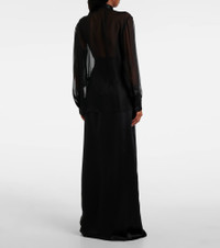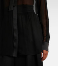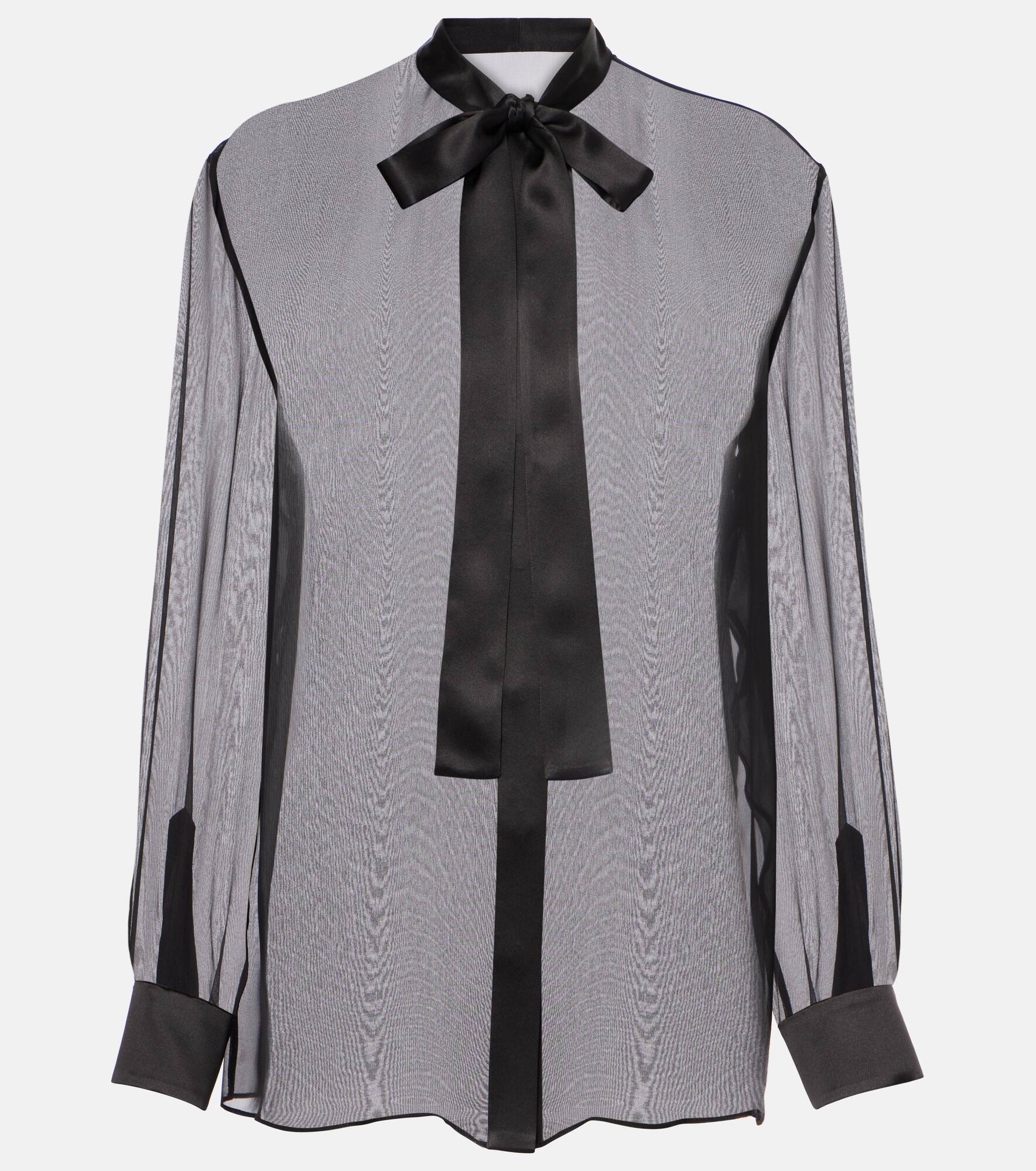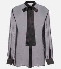 Product Details - Material: 100% silk - Care instructions: dry clean - Made in Italy - Designer color name: Black - Closure: concealed buttoned front, self-ties - Buttoned sleeves - Item number: P00966401 Size & Fit - True to size - Dropped shoulders - Sheer - Designed for a loose fit - Non-stretchy fabric - Falls below the hip - The model seen in the picture is 178cm-5'10" and wearing a size IT 40