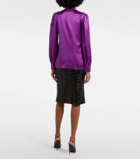 Product Details - Material: 100% silk - Care instructions: dry clean - Made in Italy - Designer color name: Porpora - Closure: button fastening, self-ties - Buttoned cuffs - Item number: P01009535 Size & Fit - True to size - Designed for a loose fit - Non-stretchy fabric - Falls below the hip - The model seen in the picture is 178cm-5'10" and wearing a size IT 40