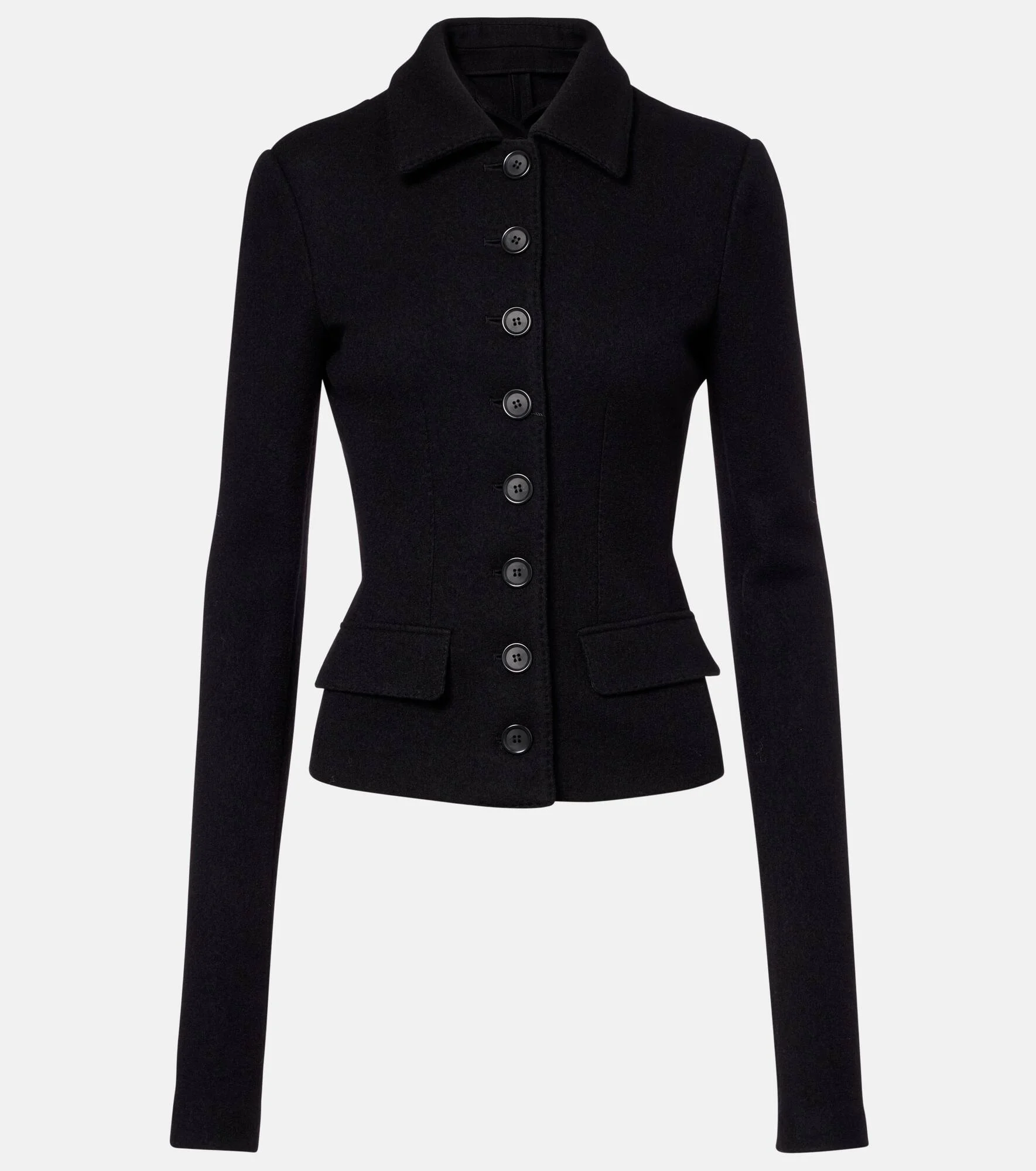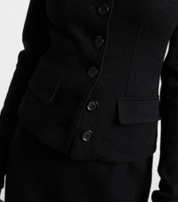 Sicilian culture is on display in Dolce&Gabbana's aesthetic, with bold styles inspired by the brand's Italian heritage. This jacket is made from soft virgin wool and comes in a fitted silhouette complete with tonal buttons. Product Details - Material: 100% virgin wool - Care instructions: dry clean - Made in Italy - Designer color name: Nero - Item color: black - Closure: buttoned front - Pockets: faux pockets - Item number: P01083665 Size & Fit - True to size - Extra-long sleeves - Cinched waist - Slightly stretchy fabric - Falls to the hip - The model seen in the picture is 178cm-5'10" and wearing a size IT 40