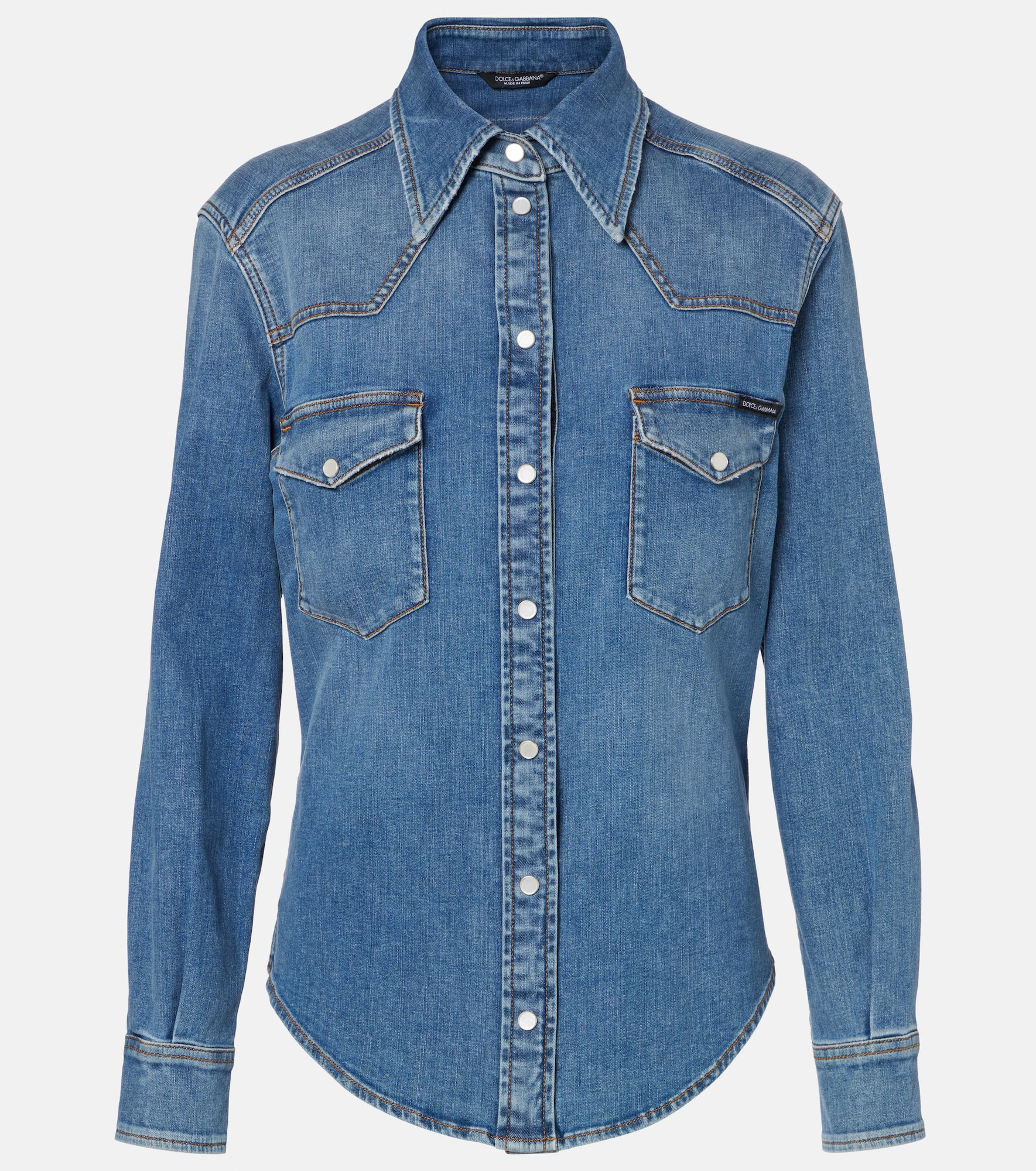 This denim shirt from Dolce&Gabbana completes every look with effortless style with its vintage washed effect. The design features a snap-button closure and a pointed collar, and the back is finished with a logo plaque. Product Details - Material: 98% cotton, 2% elastane - Care instructions: machine wash at 30 degrees - Made in Italy - Designer color name: Variante Abbinata - Item color: blue - Collar: classic (Straight point) - Closure: snap-buttoned front - Pockets: snap-buttoned pockets - Cuff: buttoned - Item number: P01052487 Size & Fit - True to size - Cinched waist - Non-stretchy fabric - Falls below the hip - The model seen in the picture is 178cm-5'10" and wearing a size IT 40