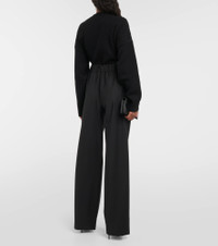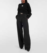 These timeless wool-blend pants from Dolce&Gabbana are perfect for an elegant lady like you. The wide-leg style has side slit pockets and an elasticated waist adorned with a logo plaque. Product Details - Material: 55% wool, 41% polyester, 4% elastane - Care instructions: dry clean - Made in Italy - Designer color name: Nero - Pockets: side slit pockets - Closure: invisible zipper - Elasticated waistband - Item number: P00848778 Size & Fit - Fits large to size - we recommend trying one size smaller - Mid-weight material - Wide-leg - High-waisted - The model seen in the picture is 178cm-5'10" and wearing a size IT 38