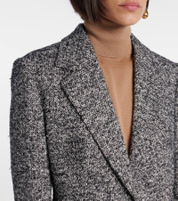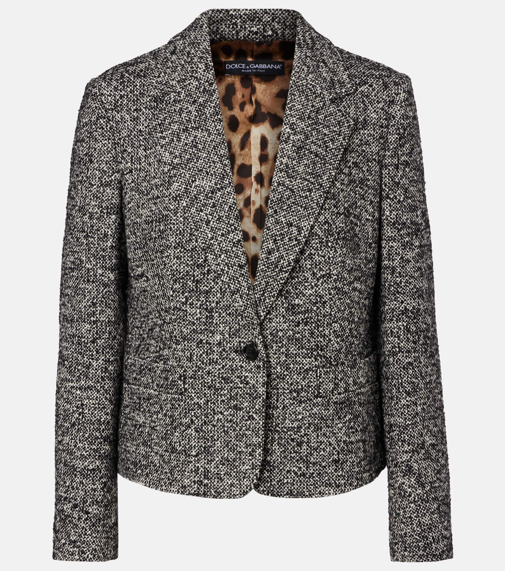 This Dolce&Gabbana jacket will keep you warm and elegant during the cold season. The garment is crafted from a soft blend of wool, silk, and alpaca and flaunts a notched lapel and a leopard-print lining. Product Details - Material: 45% wool, 25% polyamide, 20% silk, 5% polyester, 5% alpaca wool - Care instructions: dry clean - Made in Italy - Designer color name: Fantasia (Non Stampa - Item color: black, white - Lining: 97% polyester, 3% elastane - Notched lapel - Closure: buttoned front - Cuff: buttoned - Item number: P01052466 Size & Fit - True to size - Straight fit - Non-stretchy fabric - Falls to the hip - The model seen in the picture is 178cm-5'10" and wearing a size IT 40
