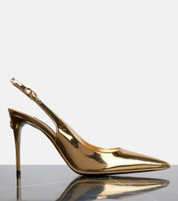 For Dolce&Gabbana's Spring 2023 collection, Kim Kardashian selected pieces from the brand's archives from 1987 to 2007. The Lollo slingback pumps are made from gold-tone leather and set atop stiletto heels. Product Details - Comes with dust bag - Sole: leather insole and sole - Upper: leather - Closure: buckle-fastening ankle strap - Designer color name: Light Gold - Made in Italy - Comes with a box - Toe shape: pointed toe - Item number: P00828685 Size & Fit - True to size - European sizes - 10cm-4" heel (size EU 38)