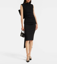 Dorothee Schumacher prefers to keep its designs refined and uncomplicated, allowing your natural confidence to shine through. This midi dress has thoughtful ruching and is accented by a satin bow detail in the back. Product Details - Material: 67% viscose, 28% polyamide, 5% elastane - Care instructions: dry clean - Made in China - Designer color name: Pure Black - Item color: black - Trim: 100% polyester - Closure: zipped side, zipped back - Item number: P01099625 Size & Fit - True to size - Shoulder pad inserts - Fitted - Slightly stretchy fabric - The model seen in the picture is 178cm-5'10" and wearing a size 1
